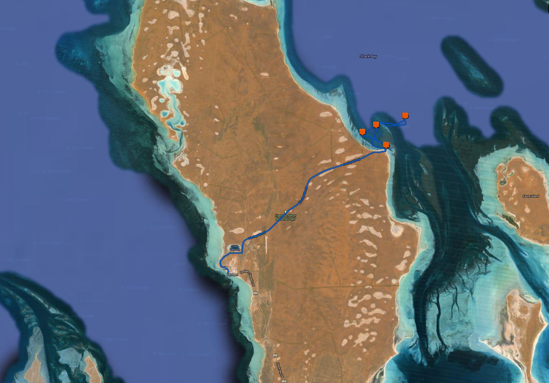 Wer in Monkey Mia ist, muss natürlich am Strand der seit 40 Jahren allmorgendlichen Delfinfütterung beiwohnen. Es werden aber nur immer die selben 5 Weibchen gefüttert, damit diese und die anderen das Jagen nicht aufgeben. Eines der Weibchen macht das schon 35 Jahre mit. Die Überlebensrate der Jungen der gefütterten Weibchen ist leider ziemlich gering. Man weiss nicht warum. Denn Anfassen darf man die Tiere nicht, aber vielleicht kriegen sie ja trotzdem menschliche Krankheiten mit.
