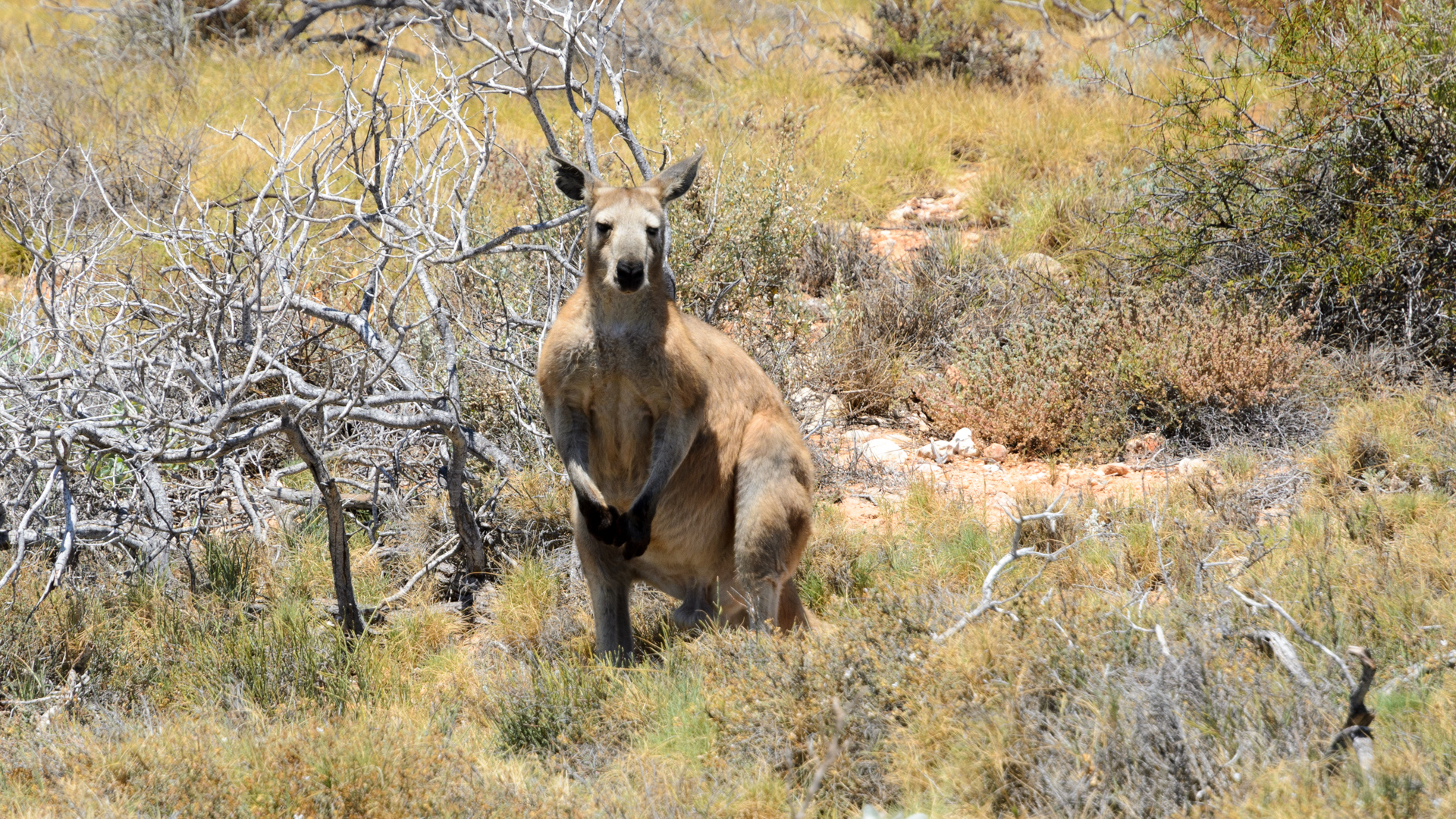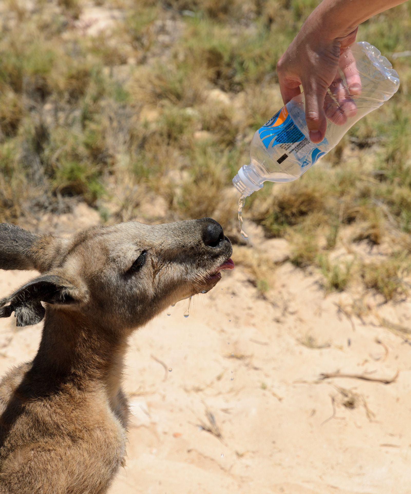 … bekam ich Besuch von einem durstigen Wallaroo (aka Euro).