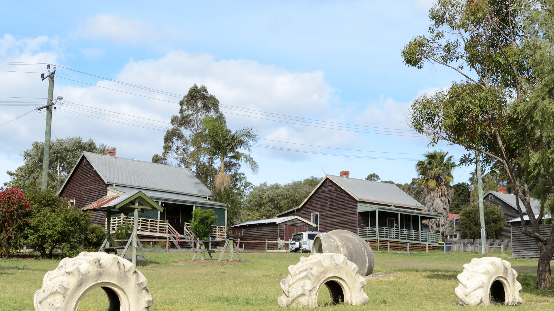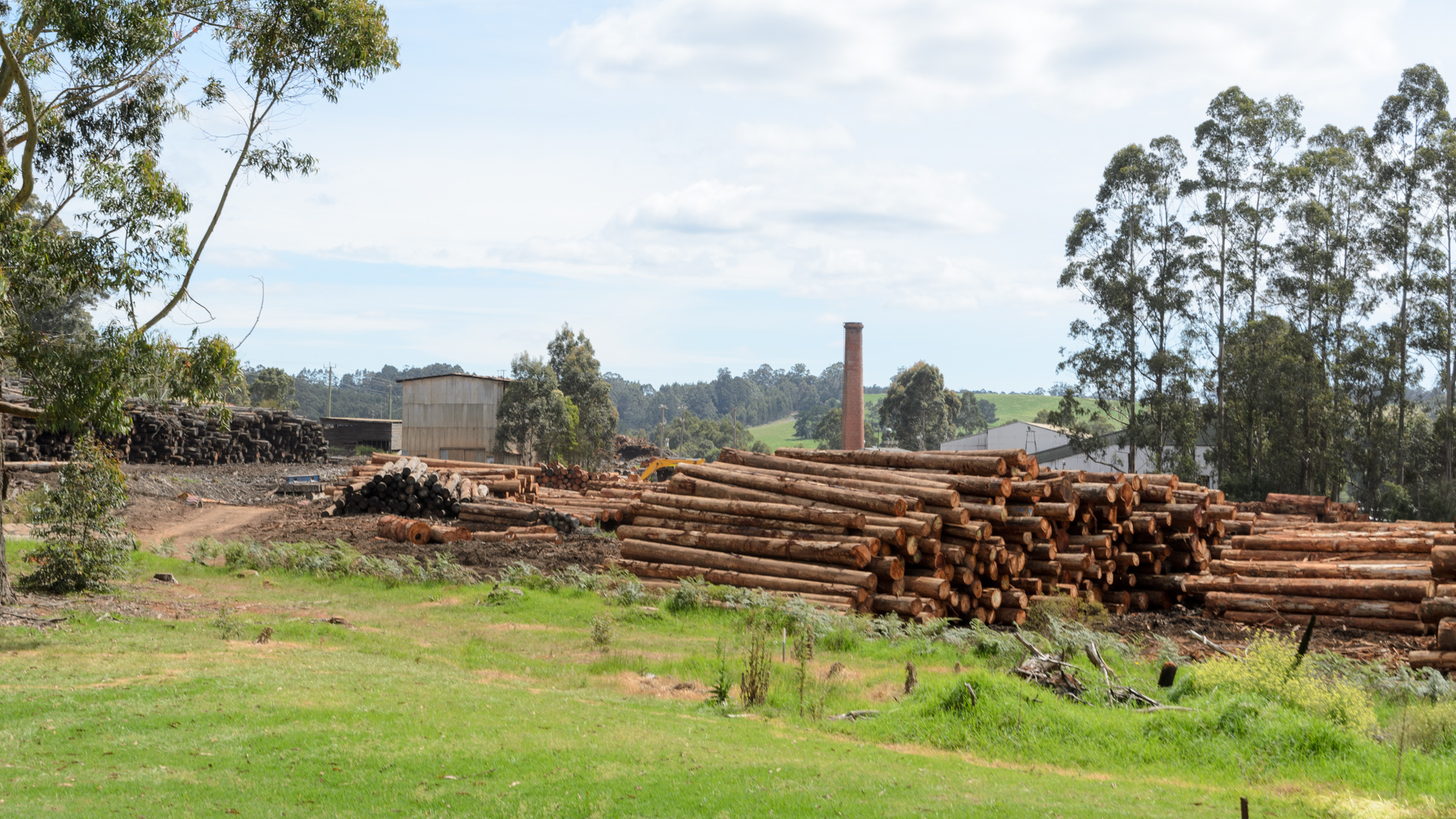 am Sägewerk (wo u.a. die Schwellen für die australische Eisenbahn hergestellt werden),