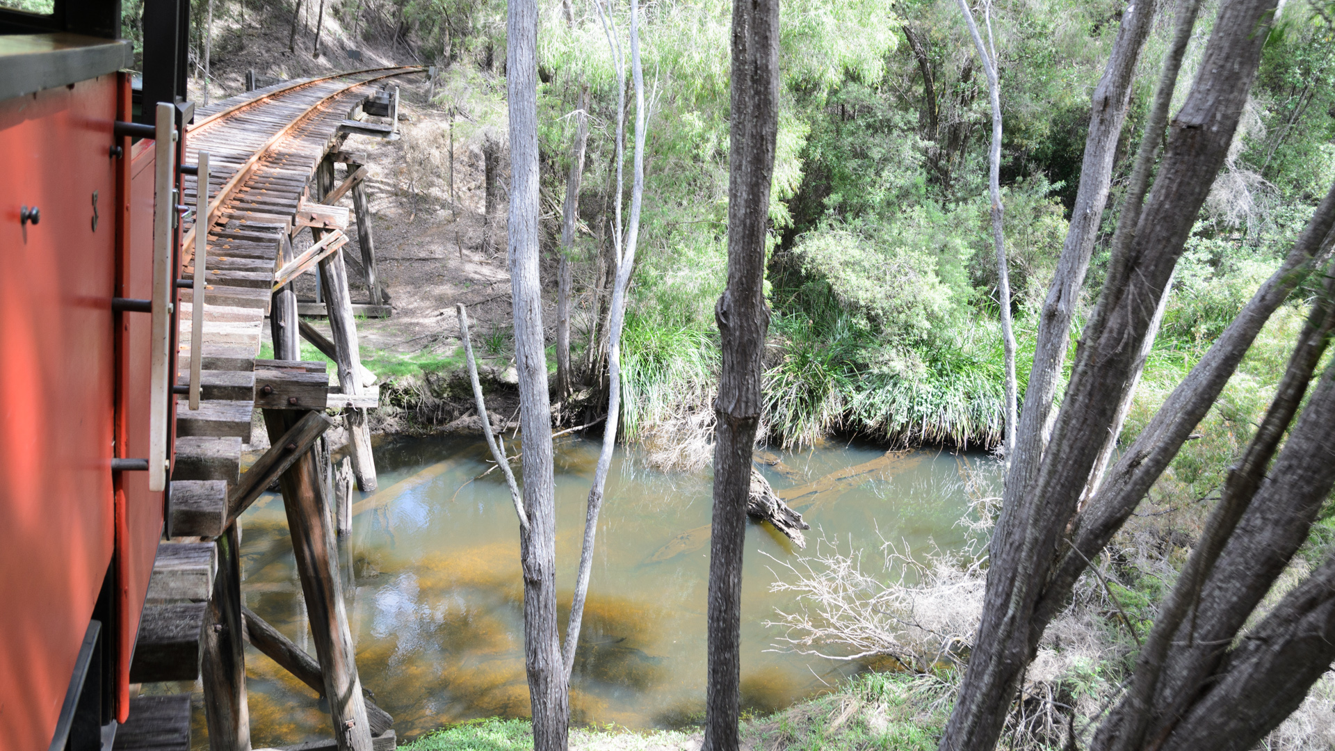 The Pemberton Tramway Co. fährt mit dieselgetriebenen Wagen die Teilstrecke einer alten Eisenbahnlinie (in den 60-ern ausser Betrieb genommen), welche für den Holztransport genutzt wurde. Die Idee war jedoch ursprünglich, Busselton mit Albany zu verbinden. Zwei Trupps haben an jedem Ende angefangen, die letzten 10km auf flachem Gelände wollte der Staat nicht mehr finanzieren, sodass die beiden Teilstrecken nie verbunden wurden.