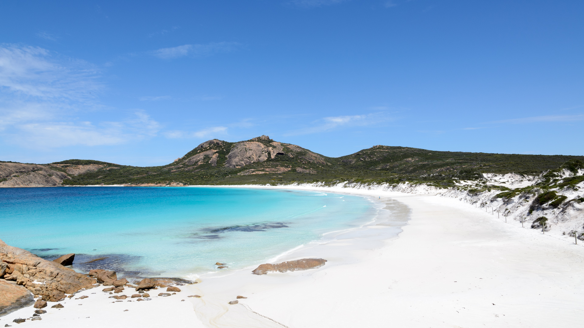 - Der Sand im Cape Le Grand NP ist tatsächlich extrem fein, fast schon Staub. Wenn man darauf läuft, dann knirscht es so, wie wenn man bei sehr kaltem Wetter auf frischem Neuschnee läuft. Nur halt barfuss, wenn man möchte. 🙂