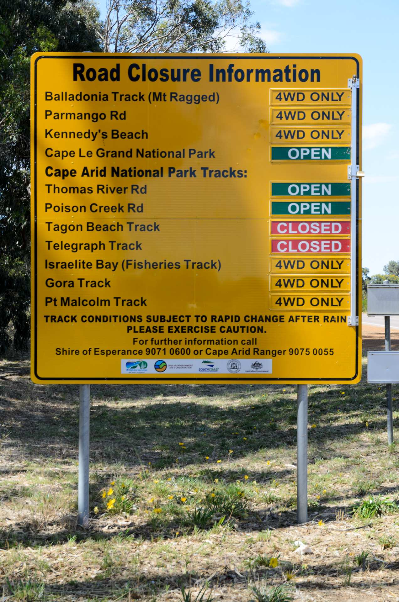Die Strasse in den Cape Le Grand NP war offen (klaro, da asphaltiert und schönes Wetter!), dahinter fängt aber wirklich das Nirgendwo an: