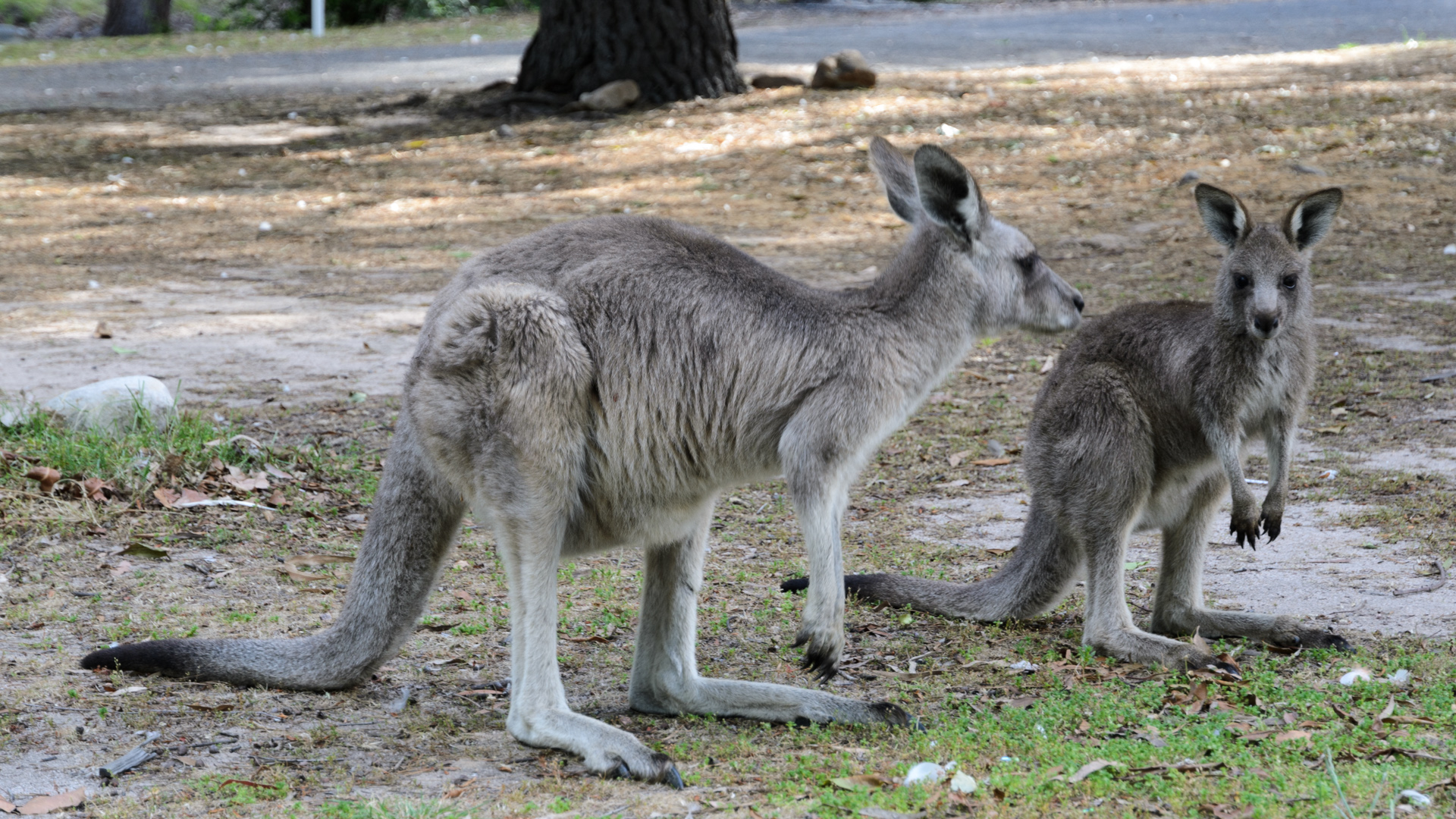 Am Morgen war noch ein Kangaroo mit Kind im Beutel unterwegs. Ich hatte leider die Kamera nicht dabei, da auch sie auf’s WC nicht mit nehme. 🙂