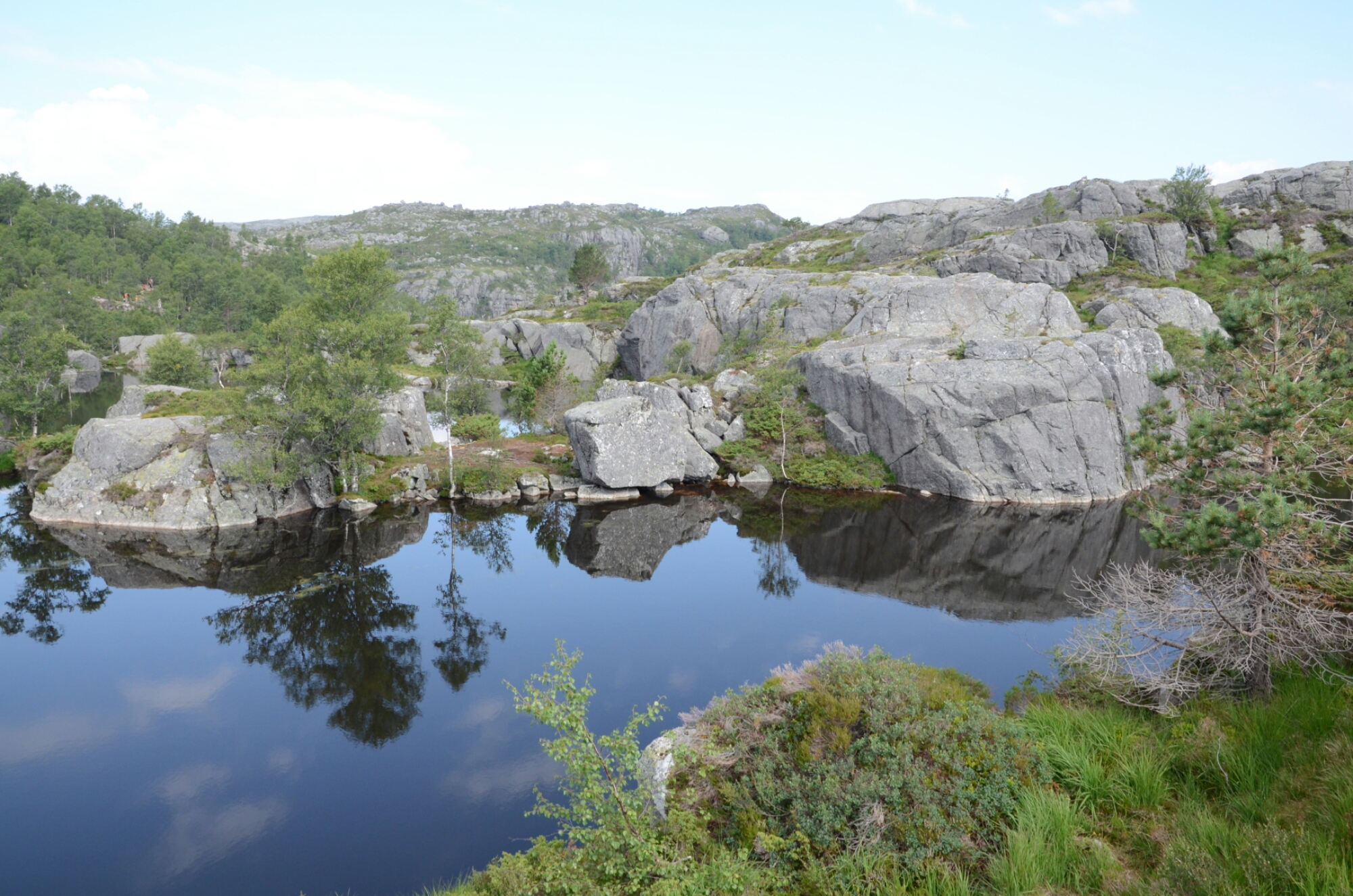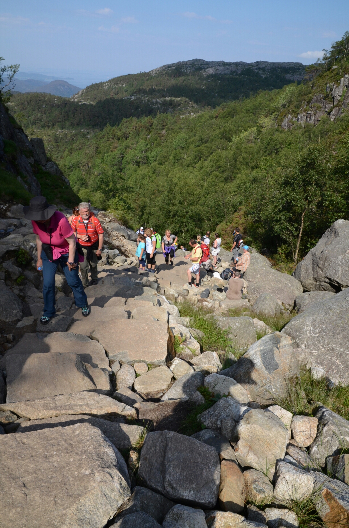 Ich bin gestern Abend gegen 19 Uhr auf dem Campingplatz in Jørpeland angekommen und bin um 8 Uhr die rund 5km zum Parkplatz gefahren. Es waren erst sehr wenige Wanderer da. Der Aufstieg (3.8km) bei angenehmen Wetter mit 18-20° war zwar streckenweise recht steil und durch die grossen Felsbrocken muss man gut aufpassen, wohin man tritt. Die Ausblicke und die Szenerie sind aber unheimlich beeindruckend.