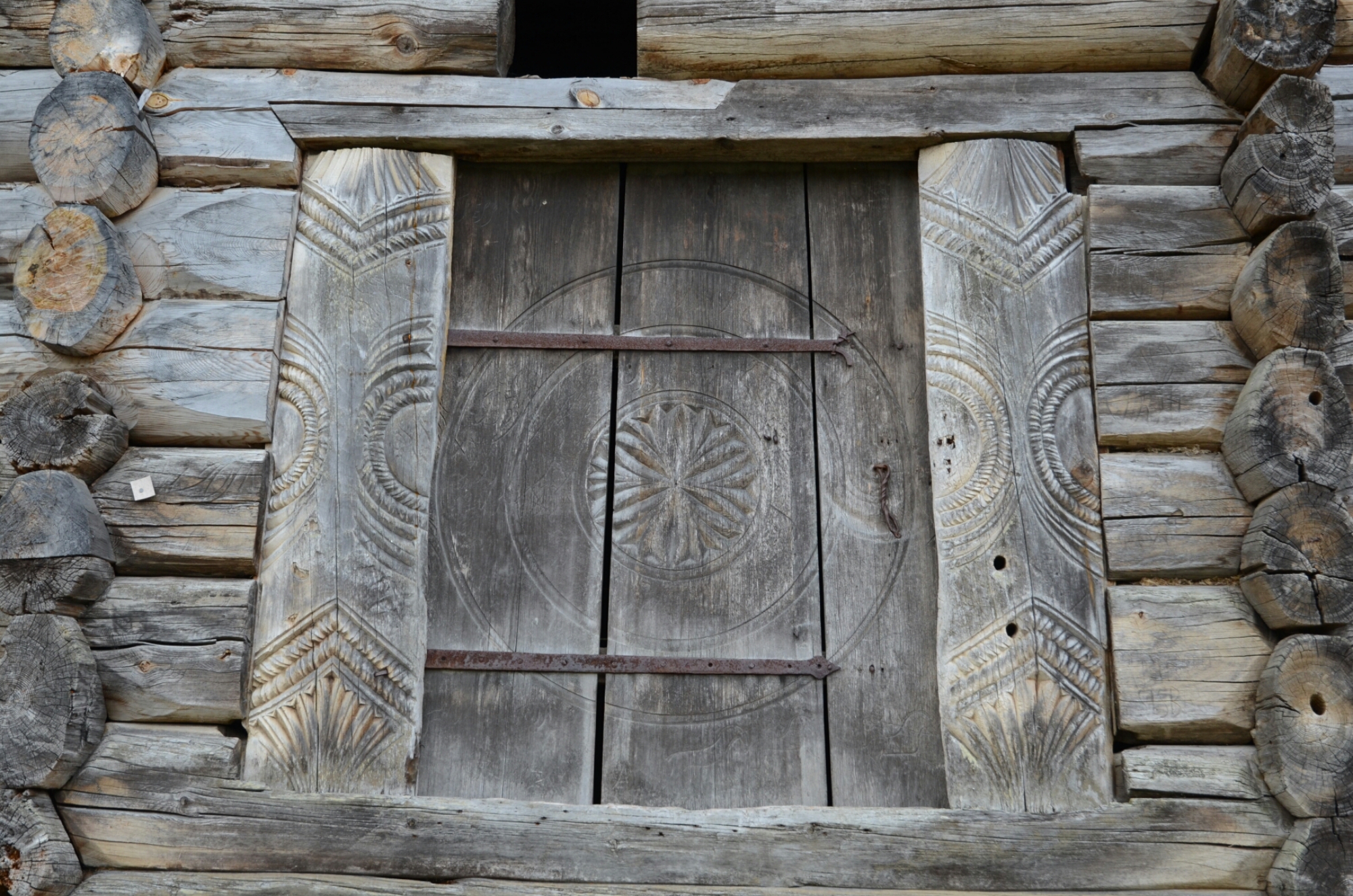 Bei den verwendeten dicken Baumstämmen und den mit dicken Steinen belegten Dächern kann man sich etwa vorstellen, wie das Wetter im Winter sein muss. Die abgebildete Tür gehört zu einem dreistöckigen (!) Lagerhaus.