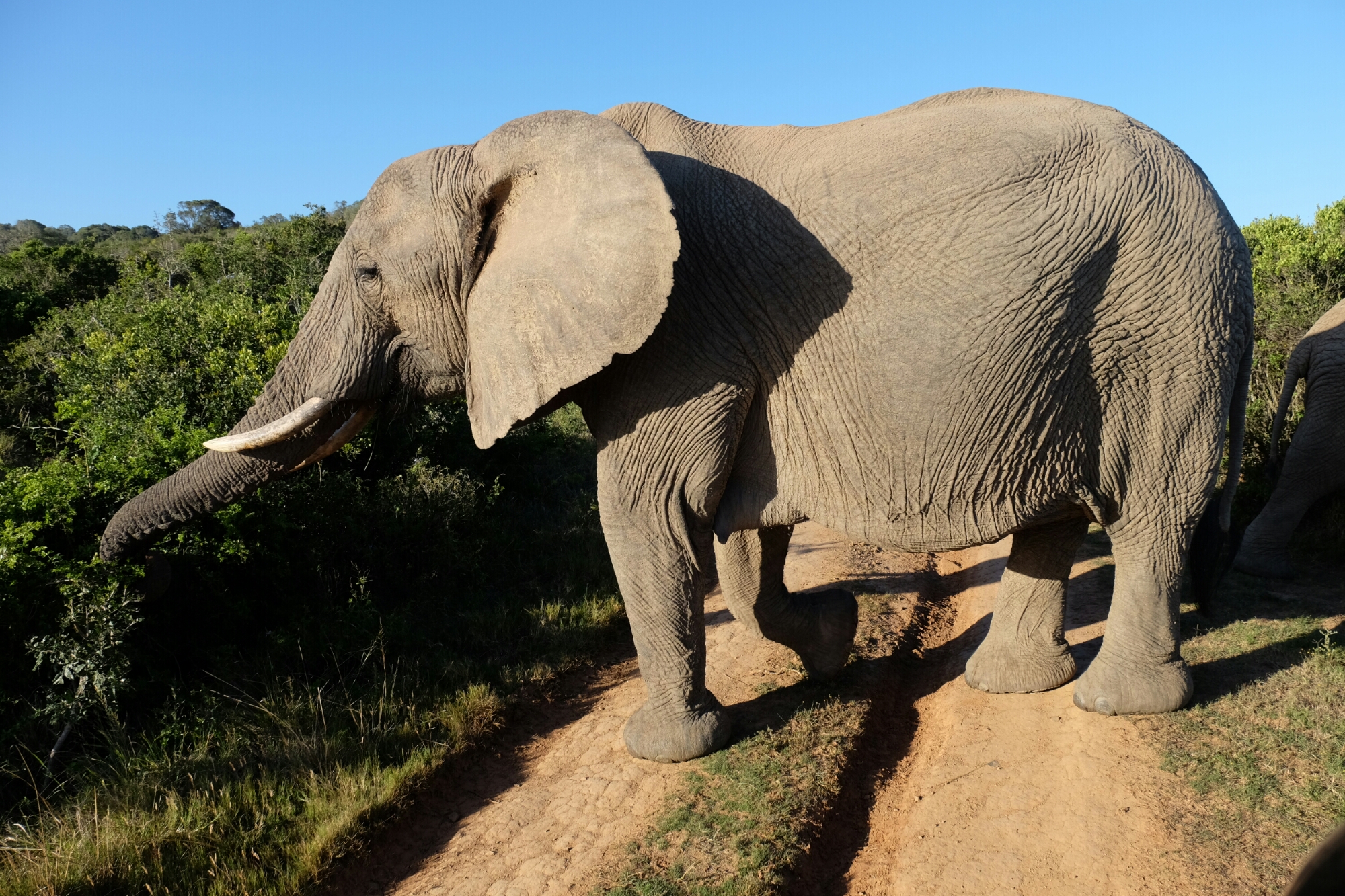 Elefantendame will bei uns durch. Wir stehen im Weg.