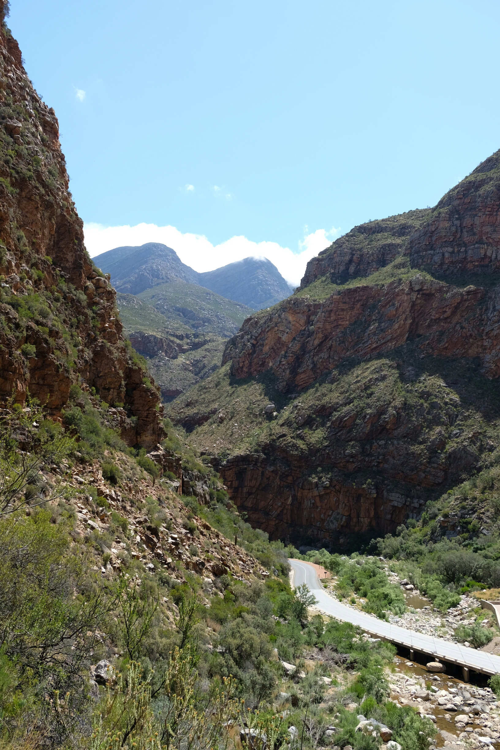 Sie führt buchstäblich durch die Swartberge hindurch, nämlich entlang der äusserst imposanten, 25km langen Meiringspoort-Schlucht. Die führt auf etwa 600m quer durch das Gebirge. So etwas Eindrückliches habe ich schon lange nicht mehr gesehen!