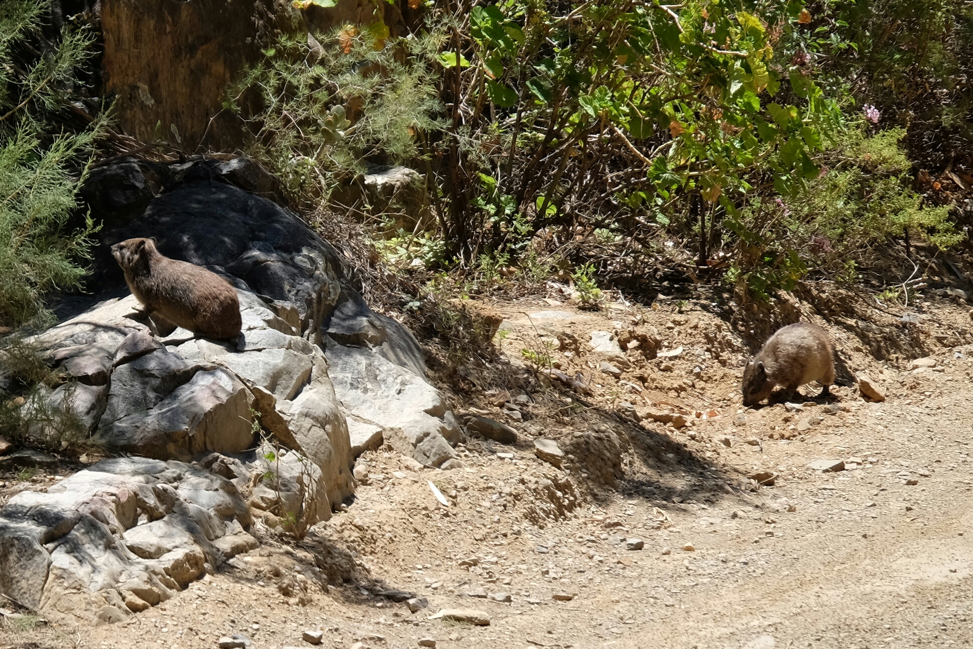 Tierischen Besuch gibt’s auch noch. Wenigstens keine aggressive Affenhorde, die’s hier auch gibt. Die standen später an der Hauptstrasse.