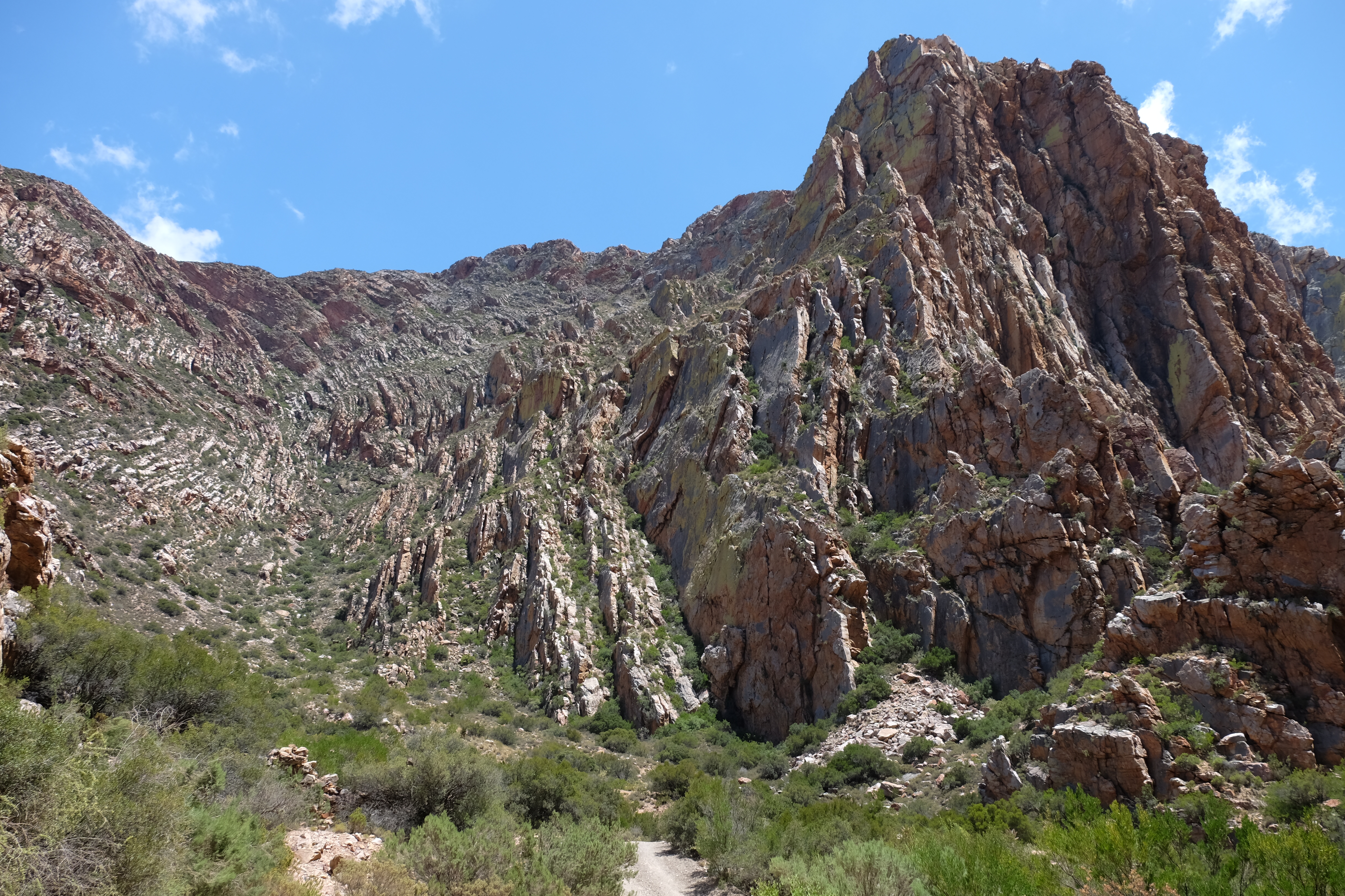 Der Swartberg Pass führt über knapp 30km lange Schotterpiste von etwa 600m auf 1583m und wieder auf 600m. Das muss man einmal erlebt haben. Er lässt sich auch mit einem normalen Auto befahren und ist sehr eindrücklich. Höhen- oder Passangst sollte man keine haben.