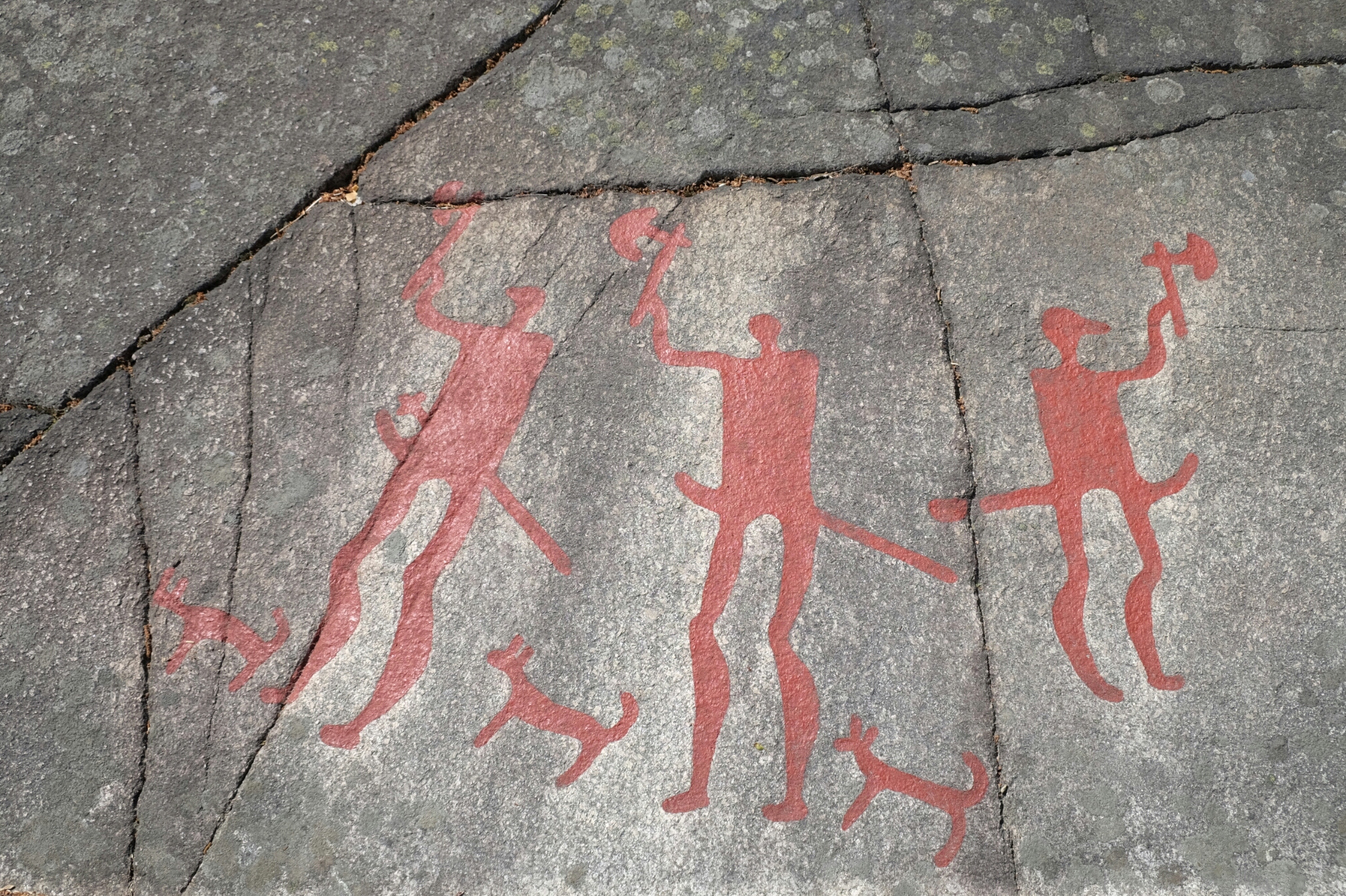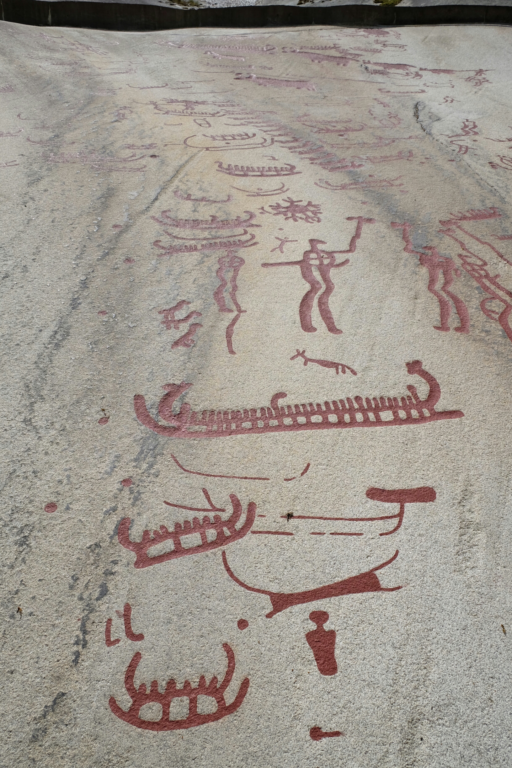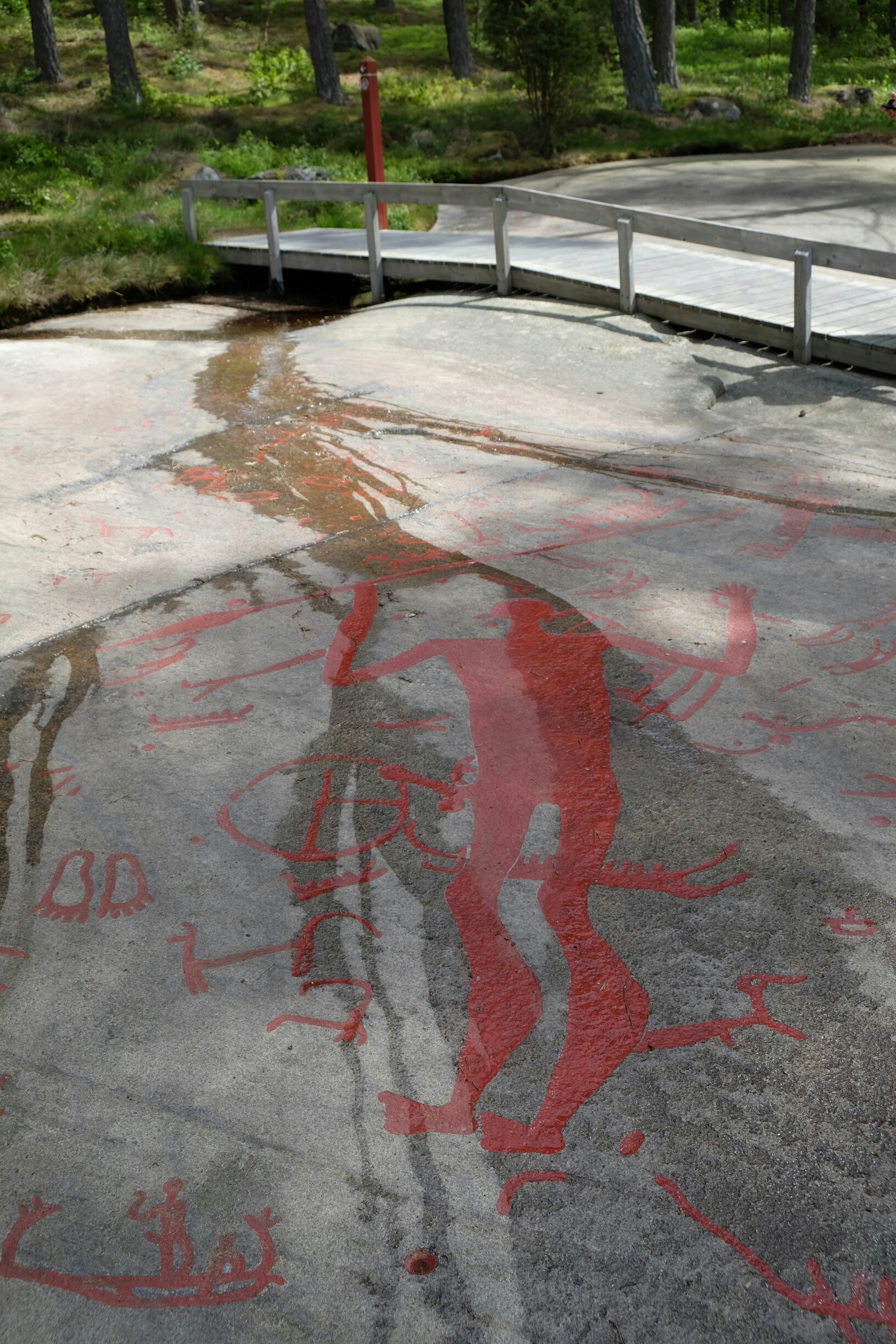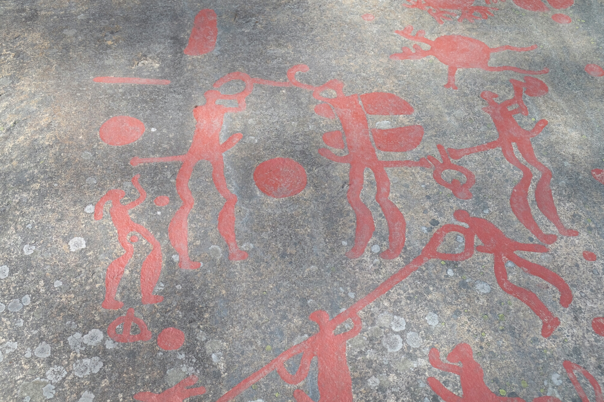 Die Bronzezeitmenschen haben sich in diesem Gebiet eindrücklich verwirklicht. Das ist so etwas wie eine riesige Freiluftgallerie. Die Felszeichnungen entstanden alle an der Küste. Schweden hebt sich seit dem Wegschmelzen der Eislast der Gletscher der letzten Eiszeit immer noch weiter an. Daher sind die Zeichnungen nun nach 2500-3000 Jahren ziemlich weit im Landesinneren.