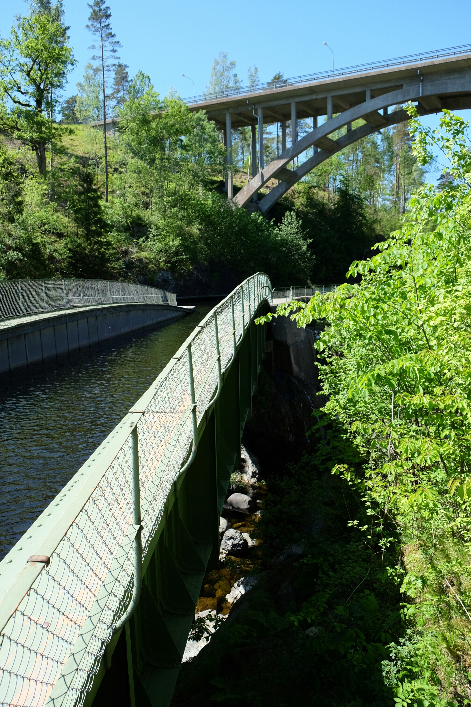 Das Highlight der Strecke ist das Aquädukt von Håverud. Mehrere Brücken auf verschiedenen Ebenen. Zuoberst die Strassenbrücke, dann kommt die Bahnbrücke (mit einer Zugbrücke), dann das Aquädukt und dann erst der Fluss.