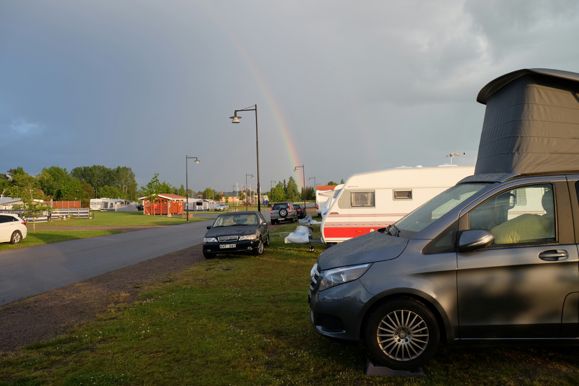 Kaum nachdem ich heute zurück auf dem Campingplatz war und meine getumblerte Wäsche sortiert hatte, ist der erste Gewitterregen durchgezogen. Und es kommt immer mal wieder eine dicke Wolke mit Regen, was schöne Lichtverhältnisse erzeugt.