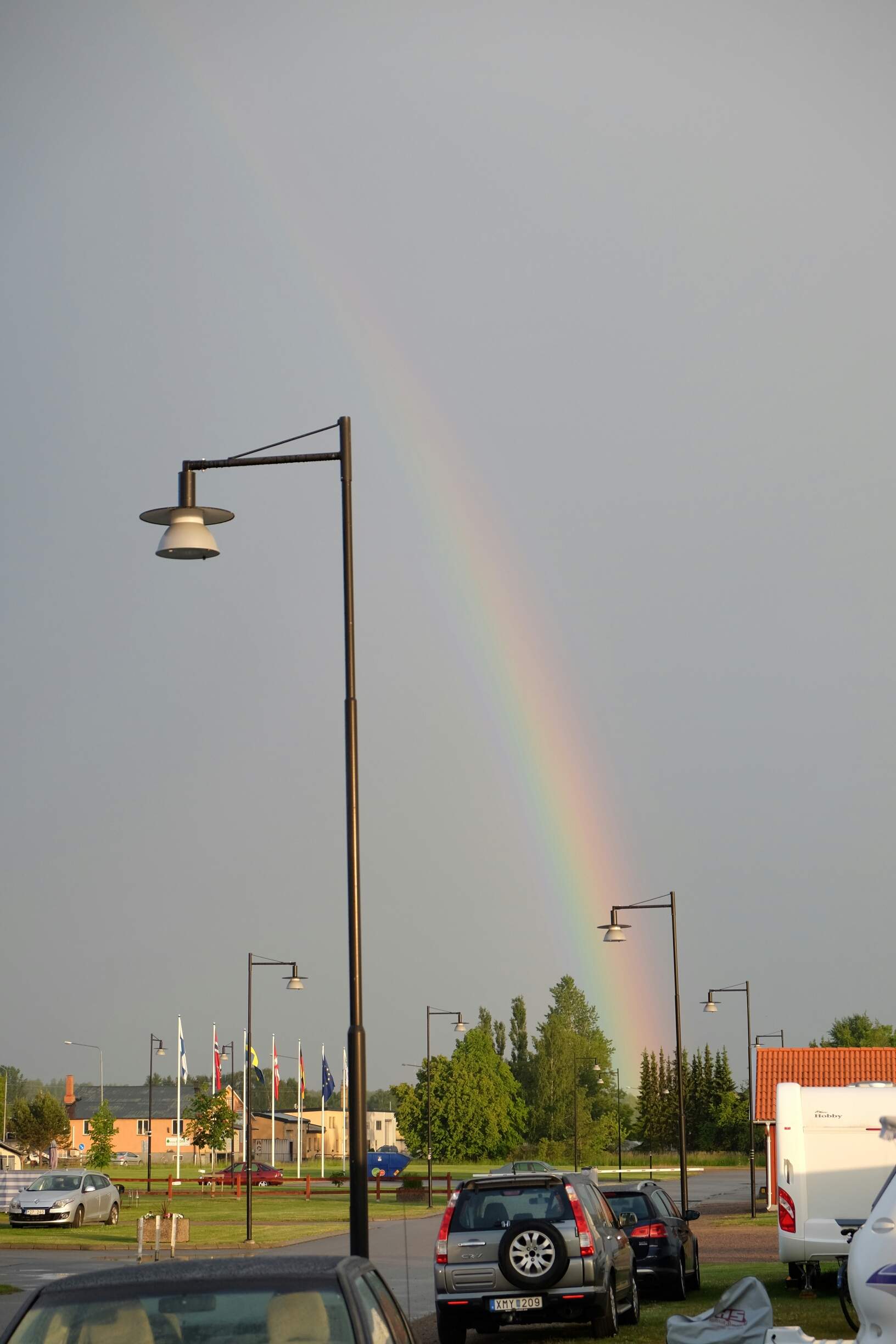 Eben (21:15) bin ich in die Regentropfen gestanden und habe diese zwei Bilder ruckzuck geschossen. schon gestern gab‘ es einen noch schöneren Regenbogen, ohne dass es direkt hier abregnete.