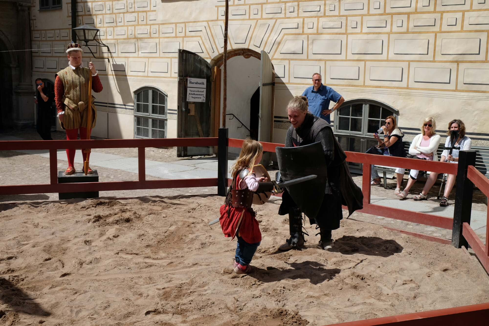 Das Mädchen hatte grossen Spass, den Schwarzen Ritter zu bekämpfen.