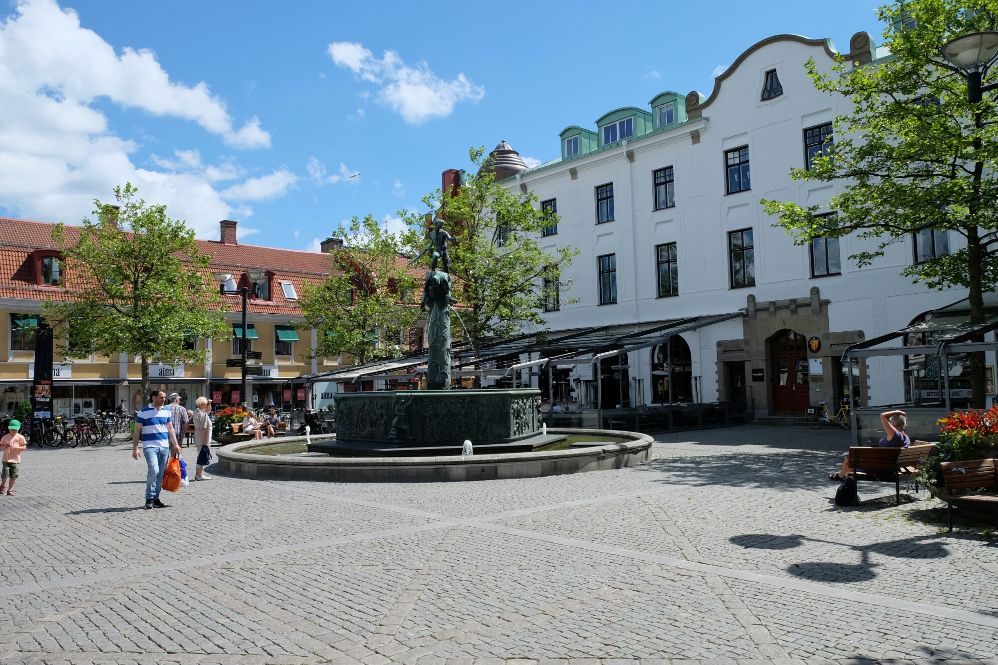 Hinter dem Schlosspark befindet sich die mittelalterliche Altstadt. Es lohnt sich, diese zu besuchen. Da ich sie schon kannte, hab‘ ich mich auf den Weg in die moderne Innenstadt gemacht. Sie liegt auf einer Insel und hat eine grosse Fussgängerzone. Die Schweden haben inzwischen gelernt, dass Strassencafés und -restaurants eine wunderbare Sache sind! Hier habe ich gemütlich ein Dagens rätt verspeist. In Schweden bieten viel Restaurants ein „Dagens rätt“ an (Gericht des Tages) an. Diese Tagesmenüs, meist in Selbstbedienung, gibt es nur um die Mittagszeit, etwa von 11-14/16 Uhr. Dagens rätt besteht zumeist aus einfachen sättigenden Gerichten, die zur Lunchzeit zu herabgesetztem Standard-Preis für etwa 80 – 100 SEK (9 bis 11 CHF) angeboten wird. Oft gehören ein frischer Salat sowie Wasser, Mineralwasser oder Leichtbier (lättöl, mit Aufpreis) dazu. Eine Tasse Kaffee oder Tee runden das Angebot typischerweise ab. Perfekt für Büroarbeiter und Touristen!