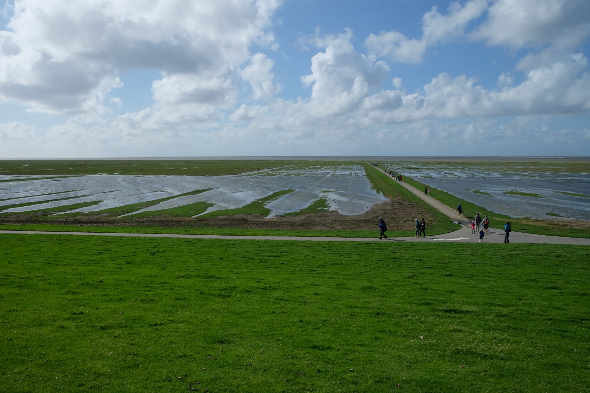 Es lohnt sich total! Die unendliche Weite der Salzwiesen und des Watts, der stürmische Gegenwind, die Sonne, die schnell ziehenden Wolken, ein paar Regenspritzer sind einfach ein Erlebnis. Man ist einfach mittendrin.