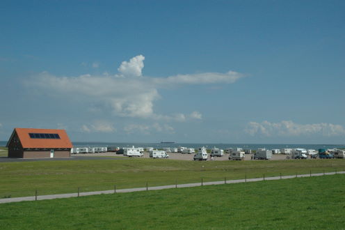 Endlich hat das stürmische und regnerische Wetter aufgehört. Nach dem Besuch von Jever bin ich schnurstracks die paar wenigen km nach Hooksiel gefahren. Dort gibt es neben einem riesigen Campingplatz auch einen sehr grossen Stellplatz mit hervorragender Infrastruktur (gratis Duschen, WC, Abwaschbecken, Ent-/Versorgung). Der Stellplatz befindet sich vor dem Deich direkt am Meer und neben dem langem Strand von Hooksiel. Ein richtiges Highlight.