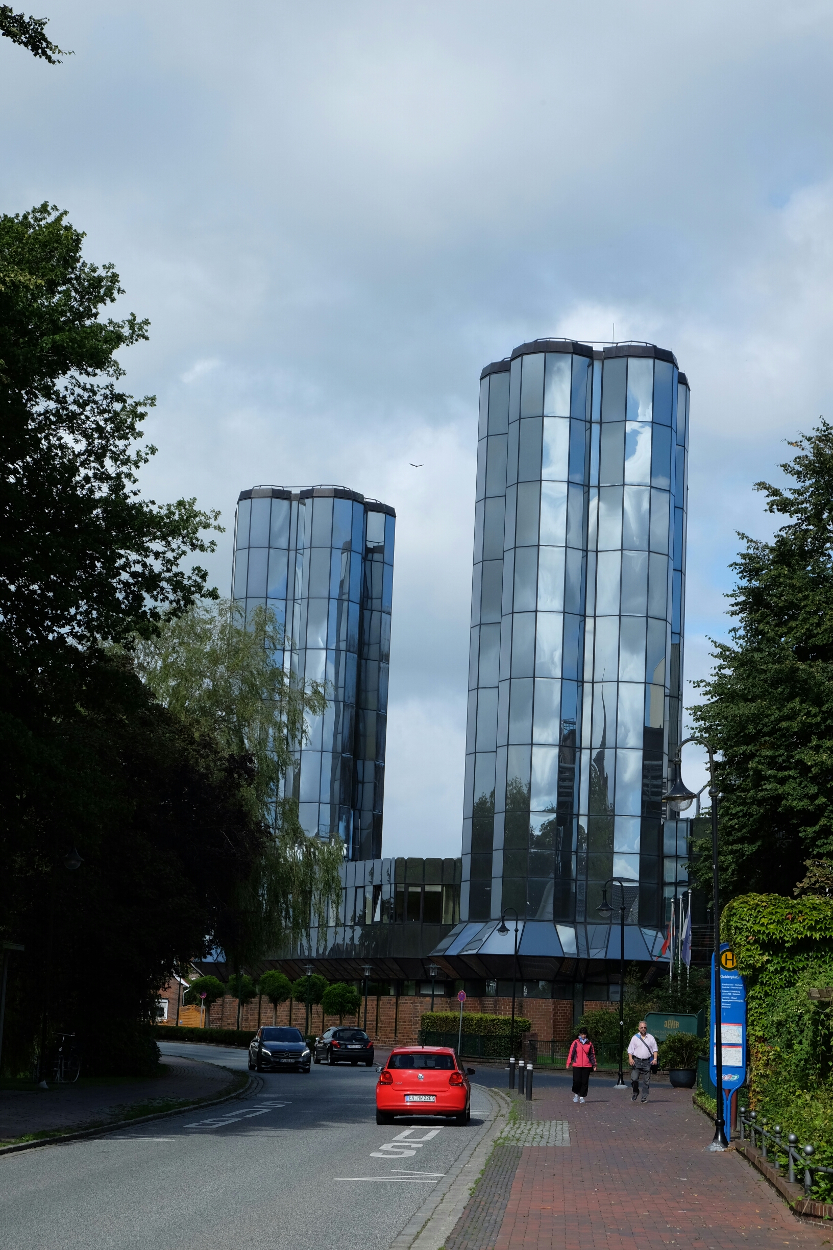 Das sind zwei der drei Spiegeltürme der Brauerei.