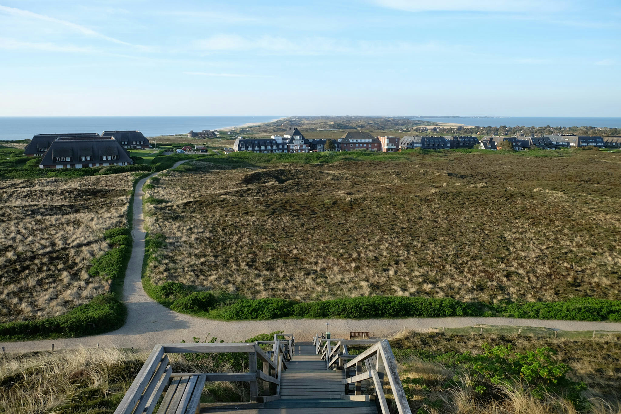 52,5 Meter Höhe gilt es zu erklimmen. 109 Stufen, flankiert von mehreren Seitenbänken für vielleicht notwendige Verschnaufpausen, führen auf die höchste Erhebung von Sylt: Die Uwe-Düne in Kampen. Im Umkreis von 40km überragt keine Erhebung diese Aussichtsplattform. Da sieht man weiter als von manchem Berggipfel!