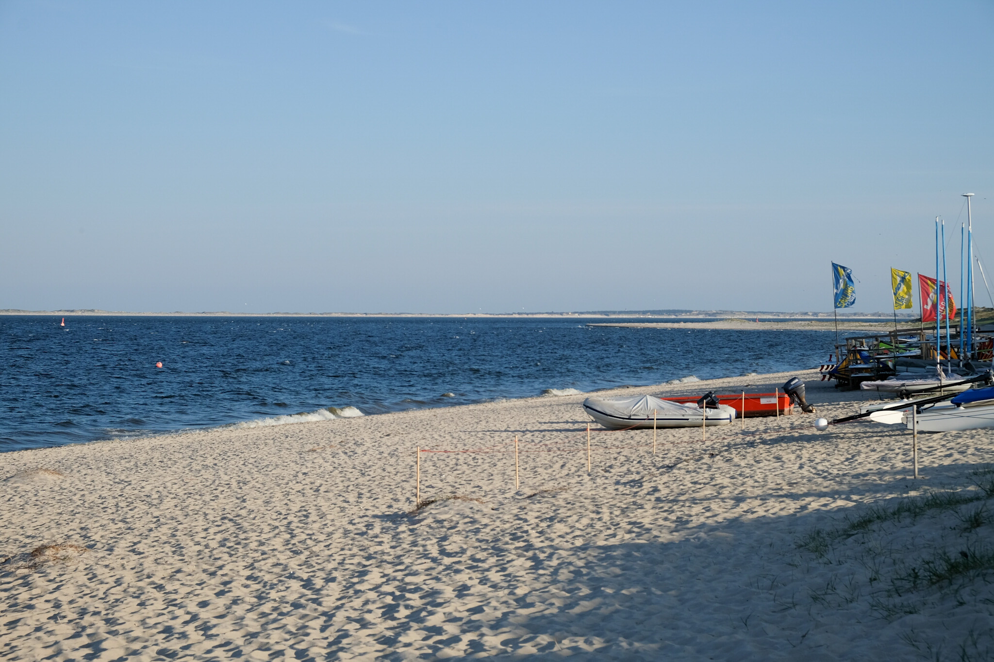 Am Hörnumer Strand hat man einen schönen Ausblick auf die beiden Nachbarinseln Föhr und Amrum, welche in ein paar km Entfernung im Wattenmeer zu sehen sind.