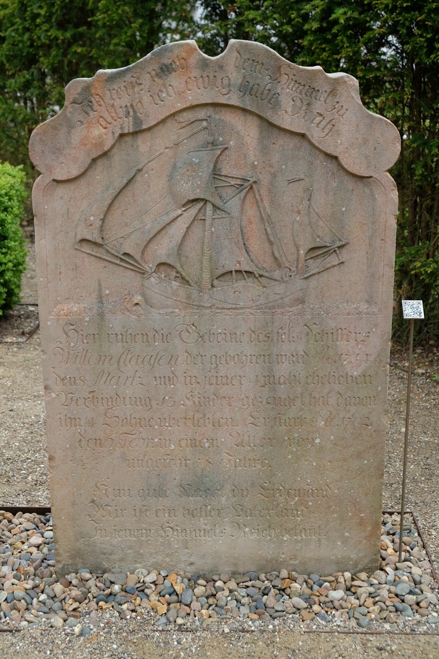 In einem besonderen Bereich des Alten Friedhof wurden viele denkmalgeschützte „erzählende“ Grabsteine (teils mit modernem QR Code) neu aufgestellt.