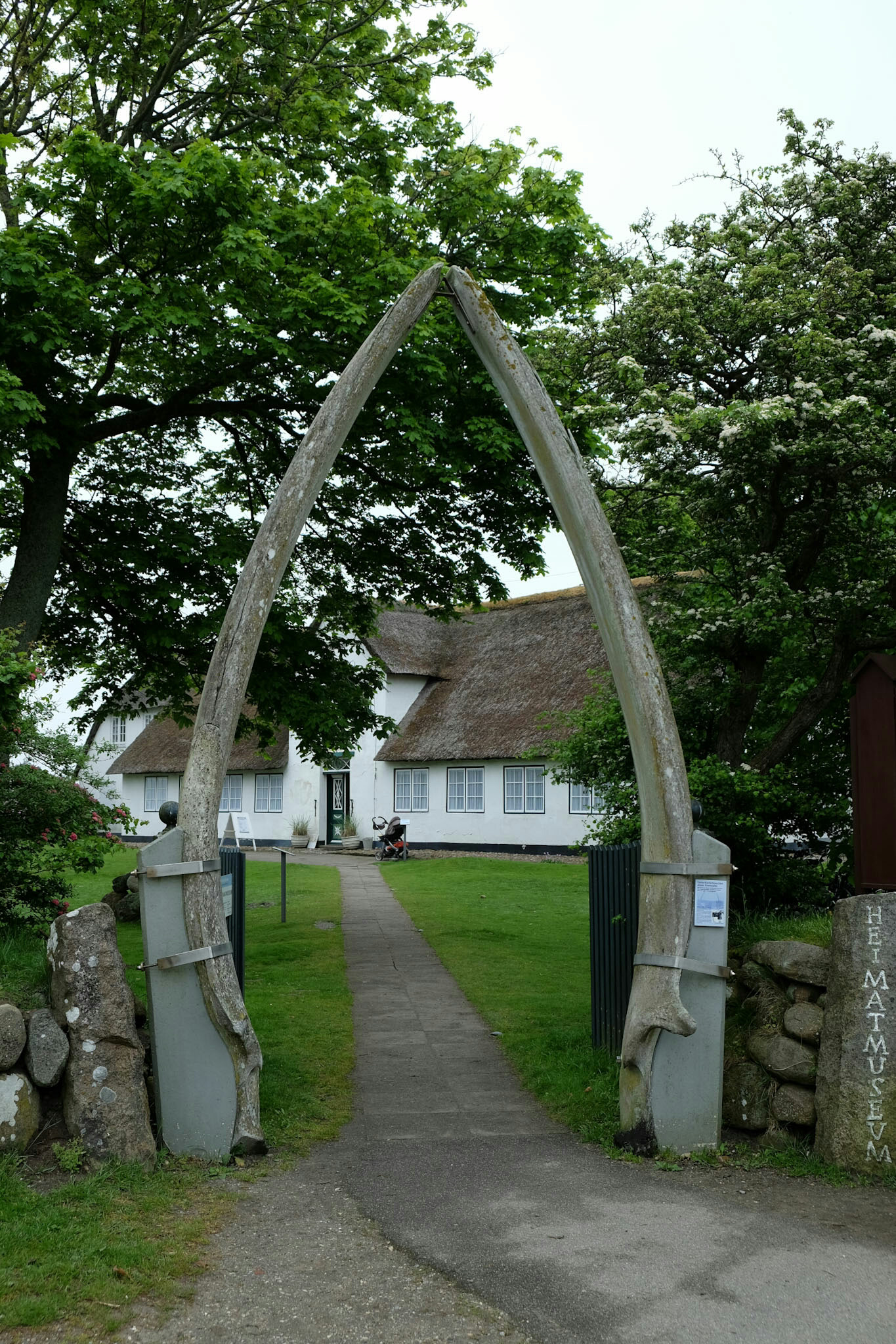 Die Kieferknochen eines Wals am Eingang des Heimatmuseums stammen von einem vor Sylt gestrandeten Wal.
