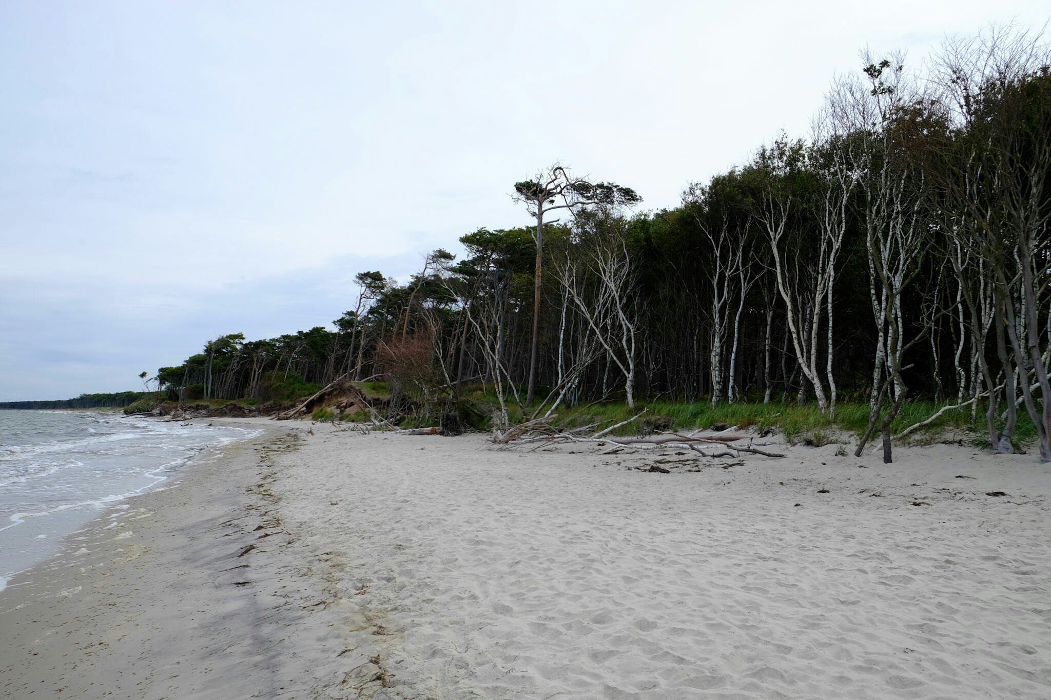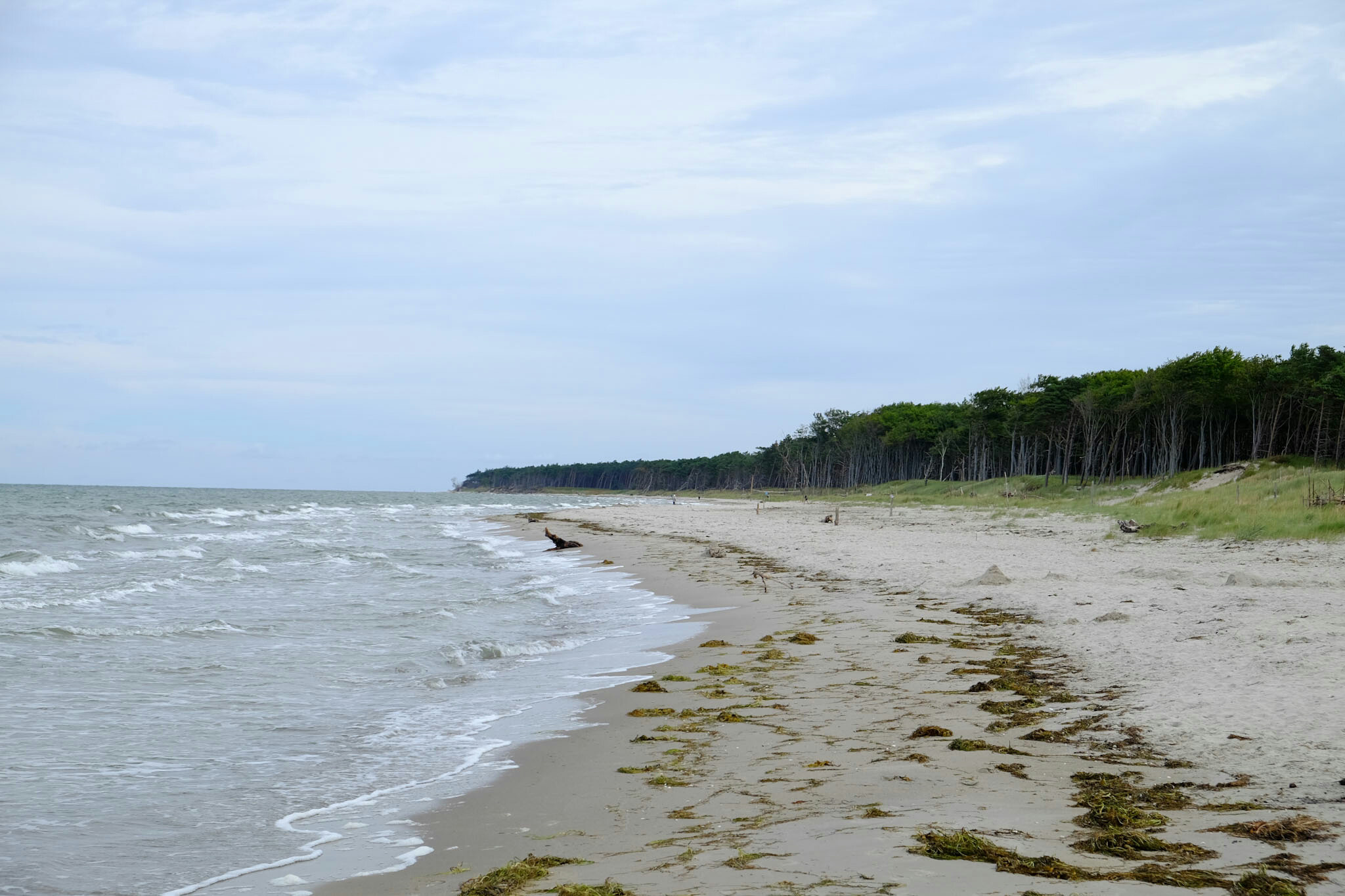 Da das Wetter heute das erste Mal zu kühl und zu wenig sonnig für einen Strandnachmittag war, habe ich am Morgen den Darsser Weststrand mit einer knapp zweistündigen Strand- und Waldwanderung erkundet. Bin mit dem Auto zum Parkplatz Drei Eichen gefahren, bin von dort die knapp 1km zum Strand gegangen und habe dann den Strand Richtung Norden erkundet, bis die Hälfte meines zweistündigen Parktickets abgelaufen war. Den Rückweg habe ich dann durch den Wald absolviert.