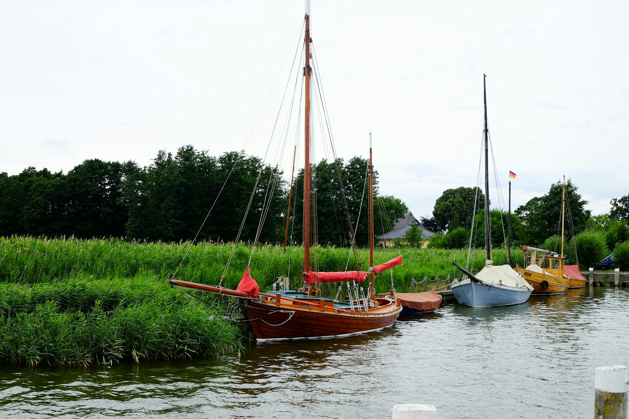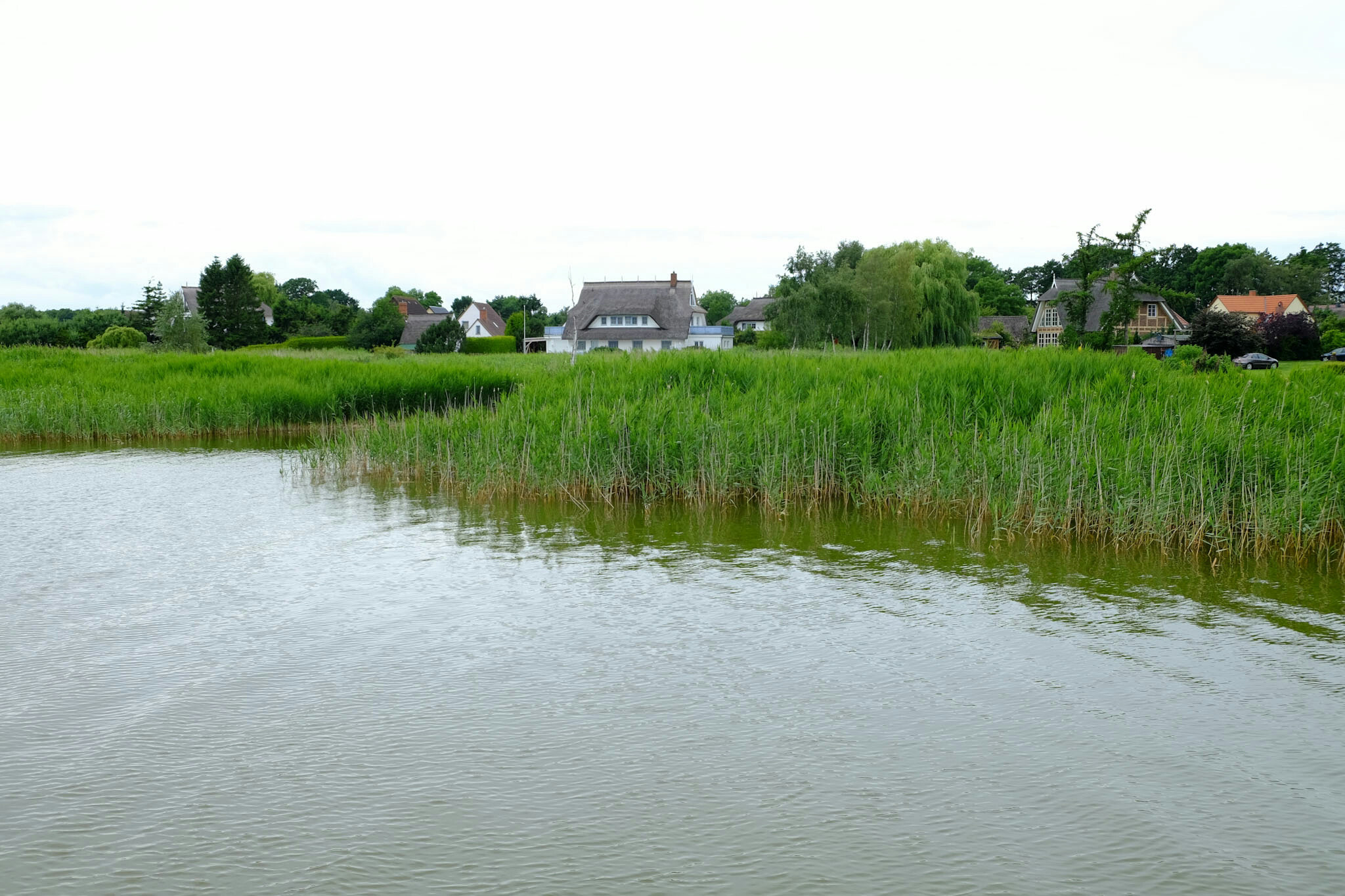 Unterwegs kann man in den beiden Dörfern viele schöne Ferien- und einige Gasthäuser begutachten, aber auch historische Kapitäns- und Fischerhäuser (mit den bekannten, bemalten Darsser Türen) bewundern. Die Aussicht von den kleinen Häfen auf den Bodden ist auch äusserst malerisch. Und wenn man dann noch ein Zeesboot (mit viel Liebe restaurierte, historische Fischerboote) in voller touristischer Aktion verfolgen kann, dann macht das noch mehr Freude. Die rotbraunen Segel der Zeesboote, waren früher mit Ochsenblut, Teer, Talg, Gerblauge von Eichenholz und Lebertran getränkt. Die Fischer warfen damit ihre Netze, die Zeesen (altdeutsch für „grosser Sack“), aus und zogen sie, beschwert mit Steinen, über den Grund.