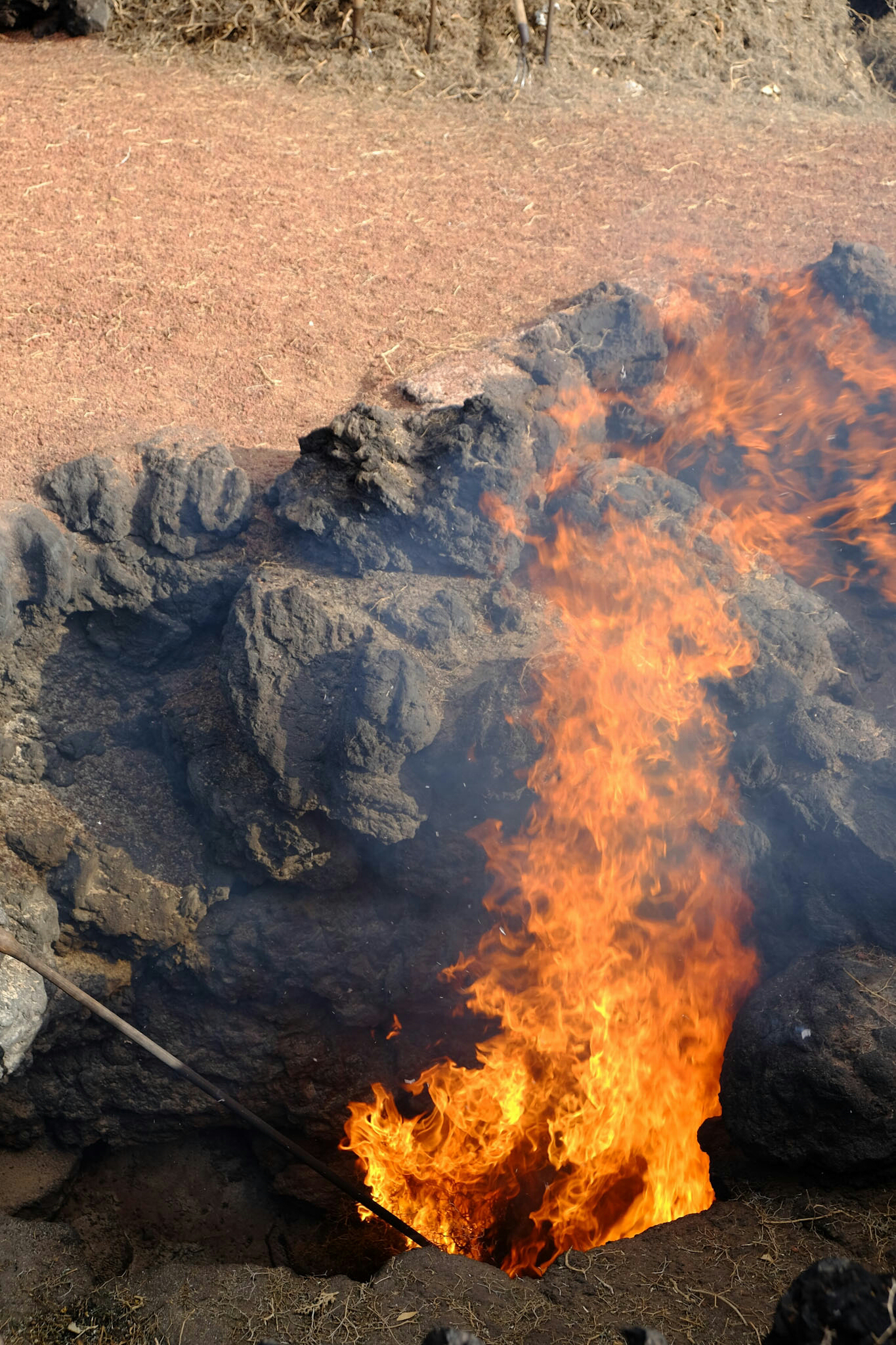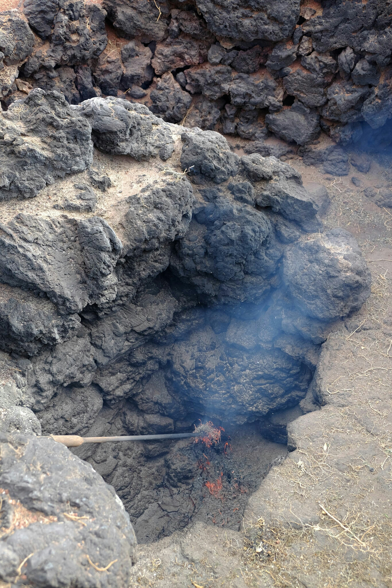 Vor dem Restaurant zeigen die Guides, wie heiss hier der Untergrund ist. Nur knapp 2m unter der Oberfläche kann man an den heissen Steinen Stroh entfachen oder mit eingelassenen Röhren geniale Wasserfontänen erzeugen. Das geht keine halbe Sekunde, bis der runtergegossene Eimer Wasser mit einem lauten Knall explodiert! Lustig ist auch der öffentliche Lavagrill (endlich weiss ich, woher der Begriff kommt) in der Wand des Restaurants. Im Restaurant drinnen hat es dann noch einen weiteren, riesigen Grill.