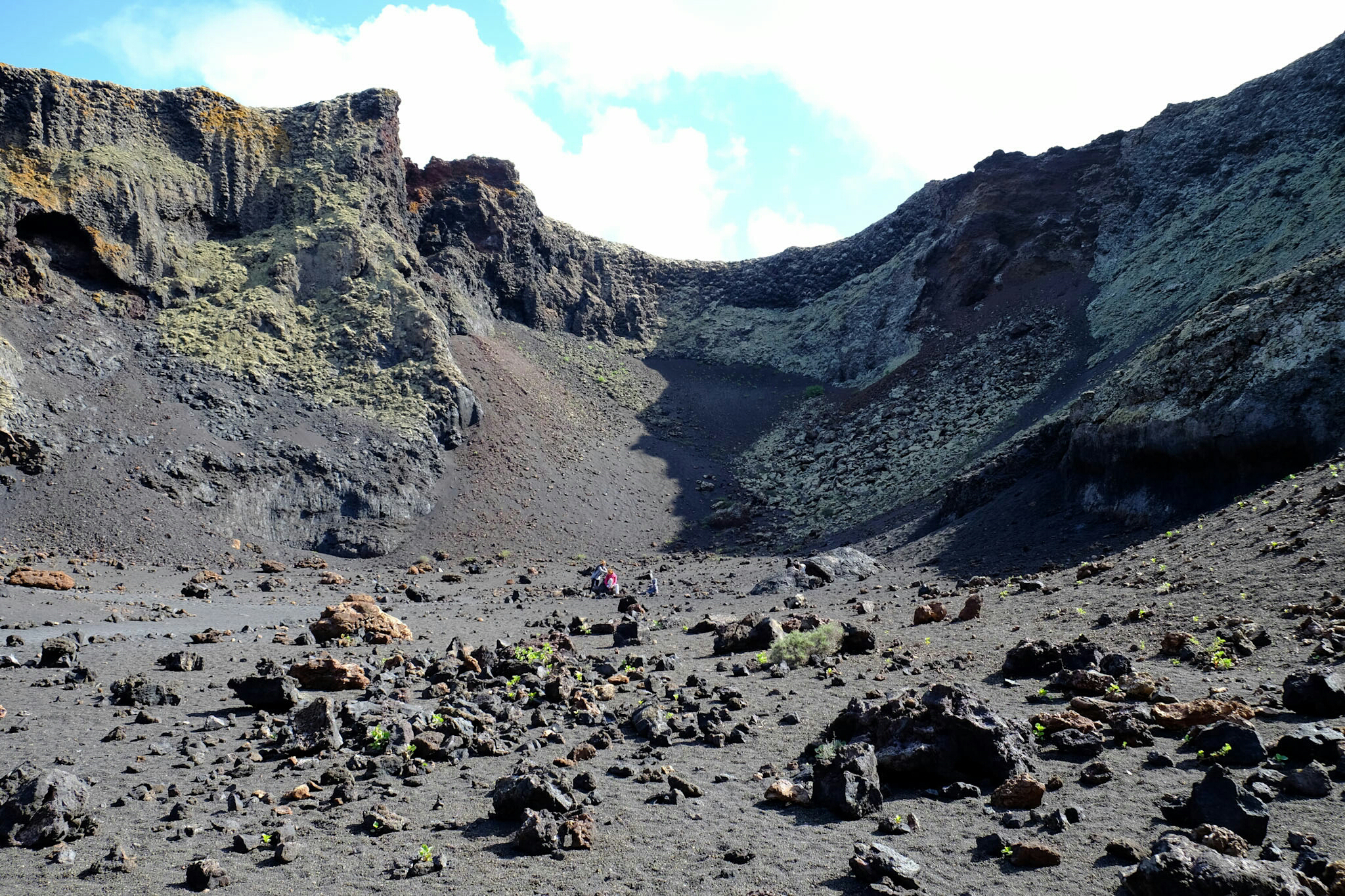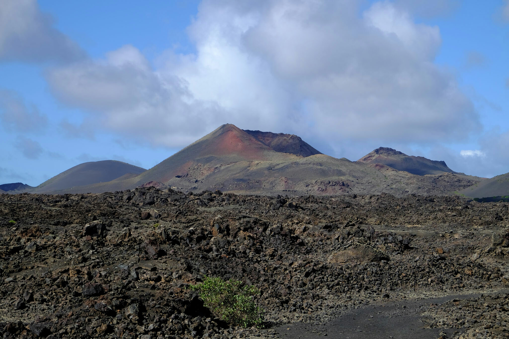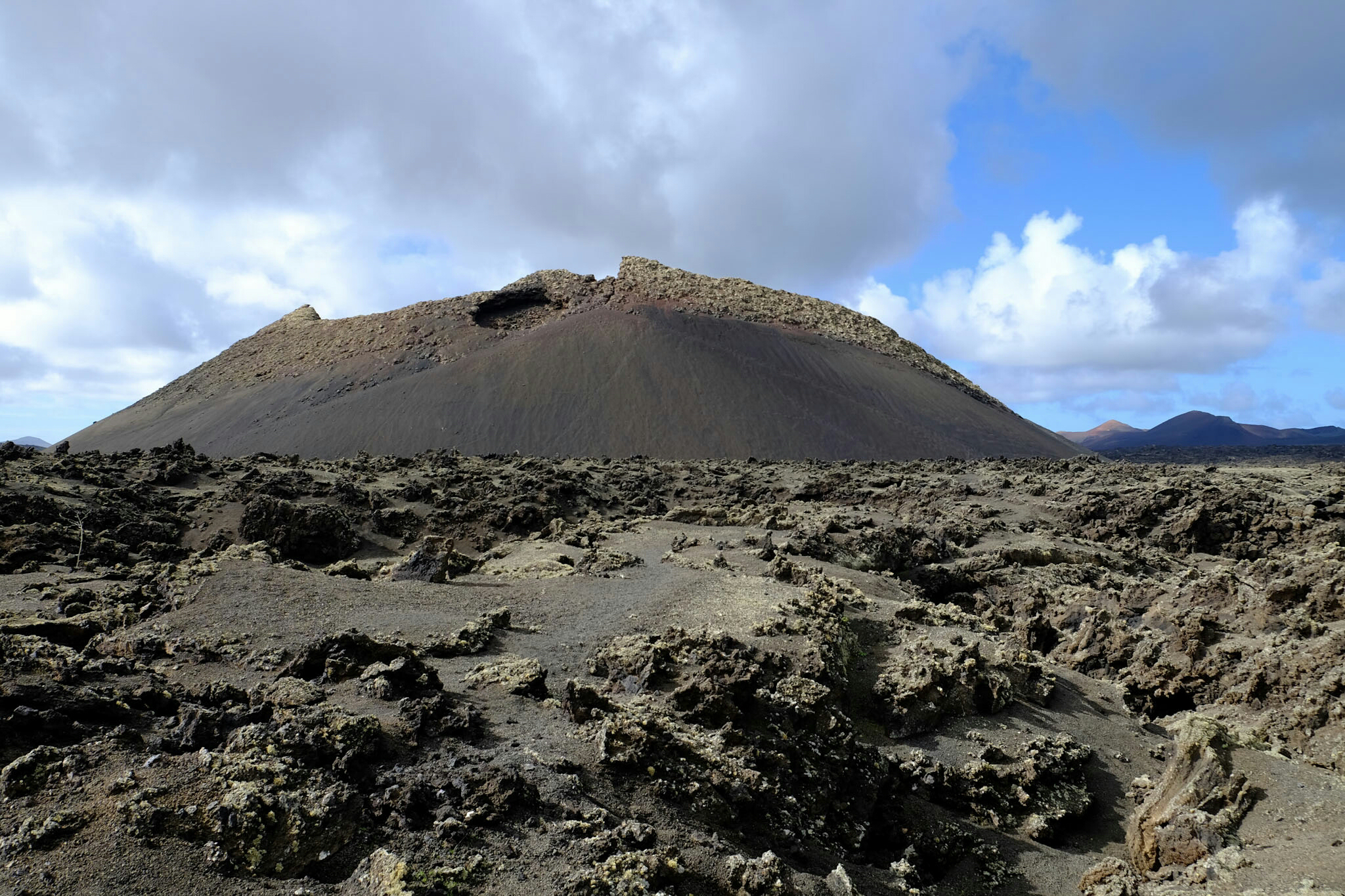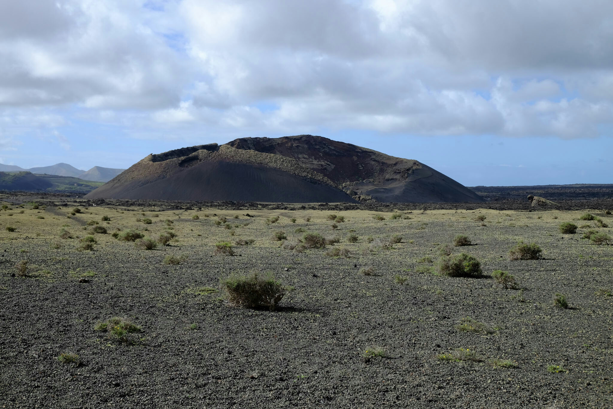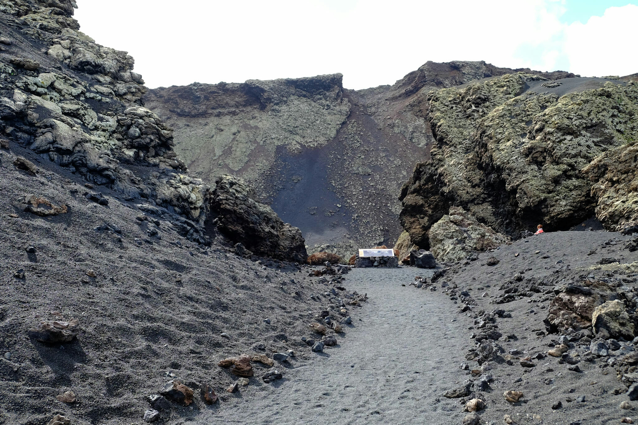 Ich hab‘ mich für die Caldera del Cuervo entschieden. Diese Caldera war der erste Vulkanschlot, der im gigantischen Timanfaya Vulkanausbruch von 1730-1736 entstanden ist. Er steht als Solitär mitten in einem ausgedehnten Lavafeld und kann in gut einer Stunde umrundet werden. Die Lava dieses kleinen Vulkans floss gegen Norden und Nordosten und hinterliess eine zerstörerische Spur von schwarzem Basalt, dem die ersten Gehöfte des Ausbruchs zum Opfer fielen. Pyroklastischer Regen zerstörte danach die Dörfer im weiten Umkreis.