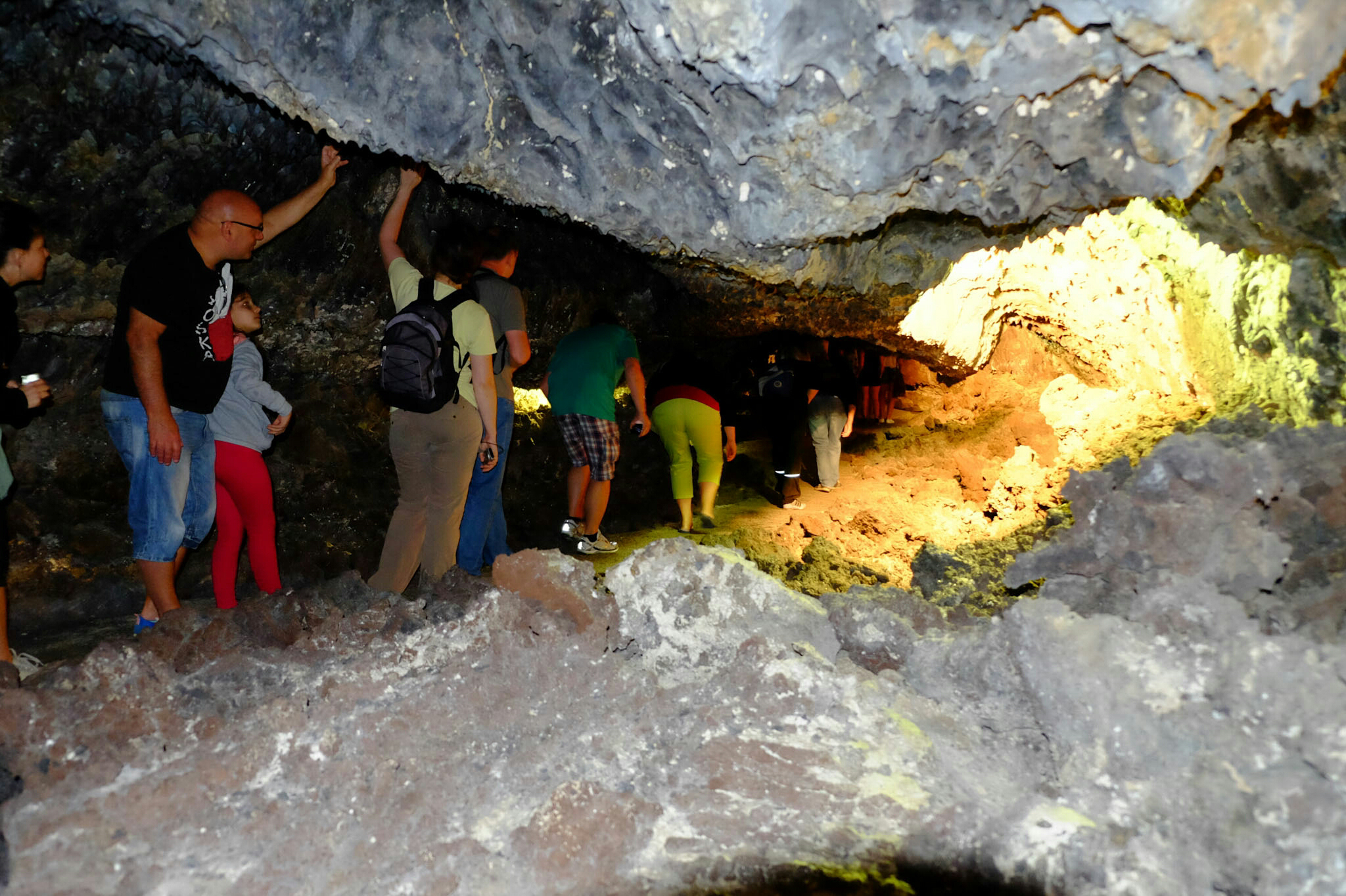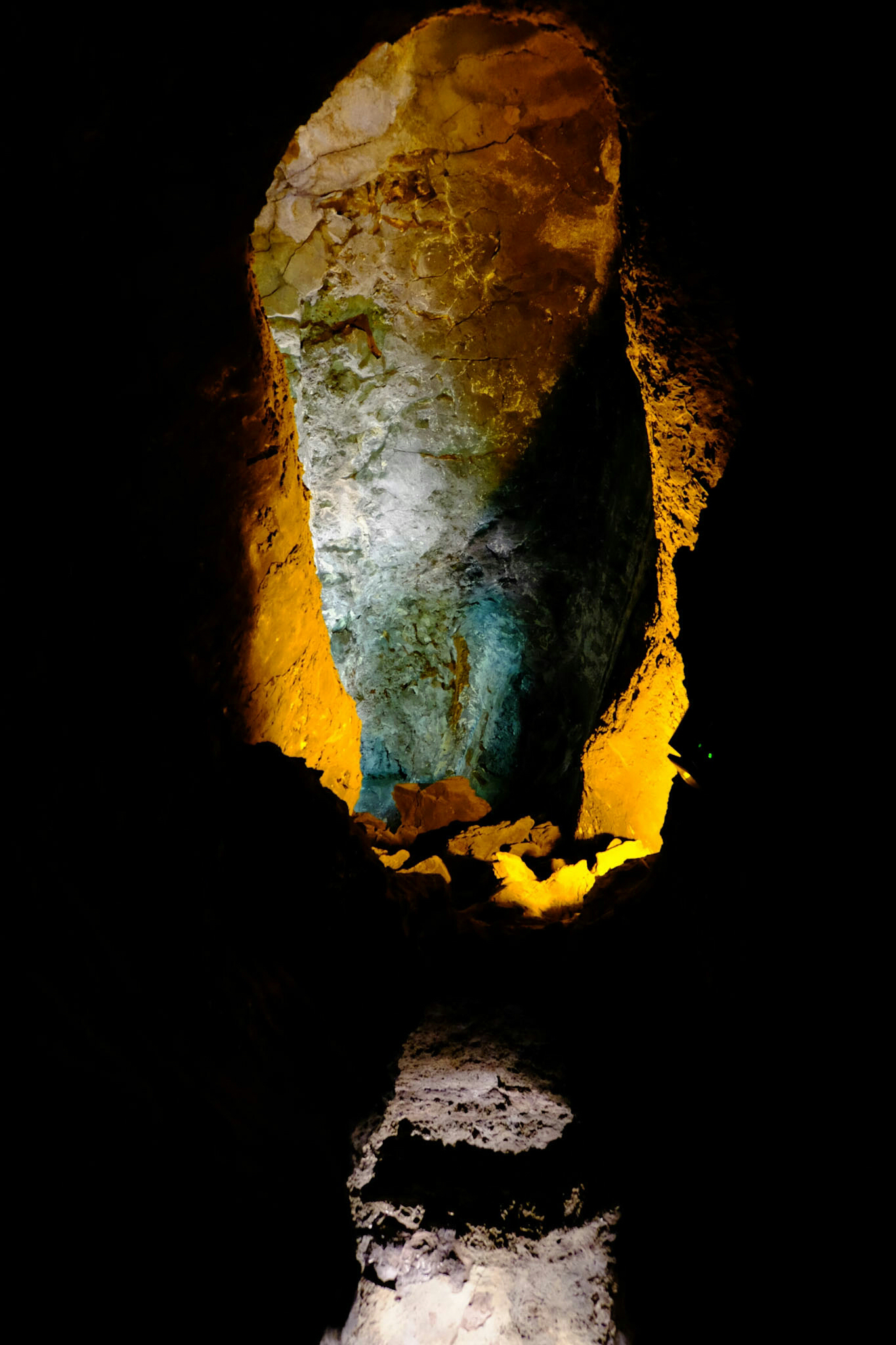1km der Höhlen kann während knapp einer Stunde mit einem Guide besichtigt werden. Am tiefsten Punkt ist man 45m unter der Oberfläche. Man bewegt sich auf zwei Ebenen hin und zurück. Alles ist toll beleuchtet und man wird von leiser Hintergrundmusik berieselt. Mich hat diese Besichtigung begeistert. Ich hätte nicht gedacht, dass die Überbleibsel eines Lavastroms so abwechslungsreich sein können. Von grossen Hallen bis zu tiefen und schmalen Durchgängen und steilen Treppen erlebt man so ziemlich alles. Man sieht gut, wo der Rest des Lavastroms erstarrt ist. Die Lava hat auch an den Decken und Wänden interessante Muster hinterlassen. Beim Wendepunkt der Tour befindet man sich im Auditorium, wo klassische Konzerte stattfinden. Danach erwartet die Besucher in der oberen Ebene noch eine total faszinierende Überraschung! Die muss man aber selber erleben, es wird nichts verraten…