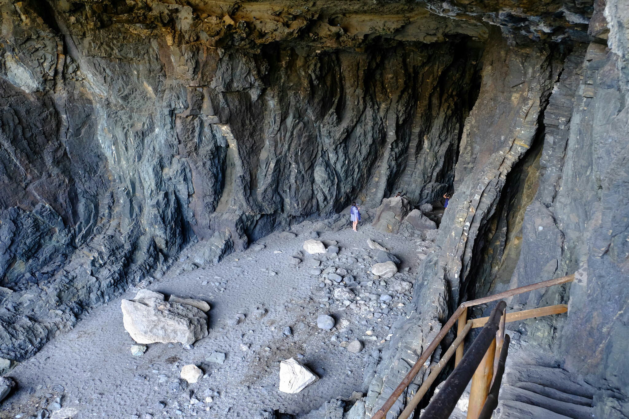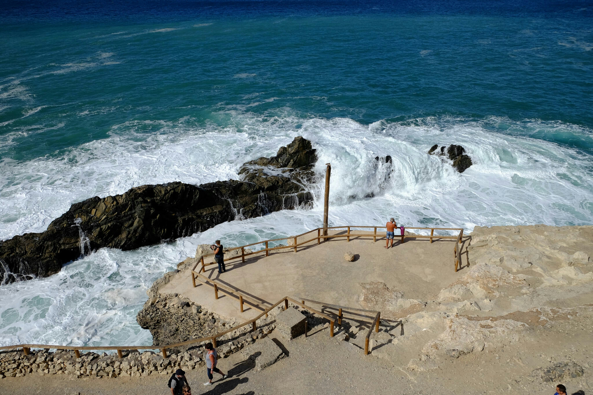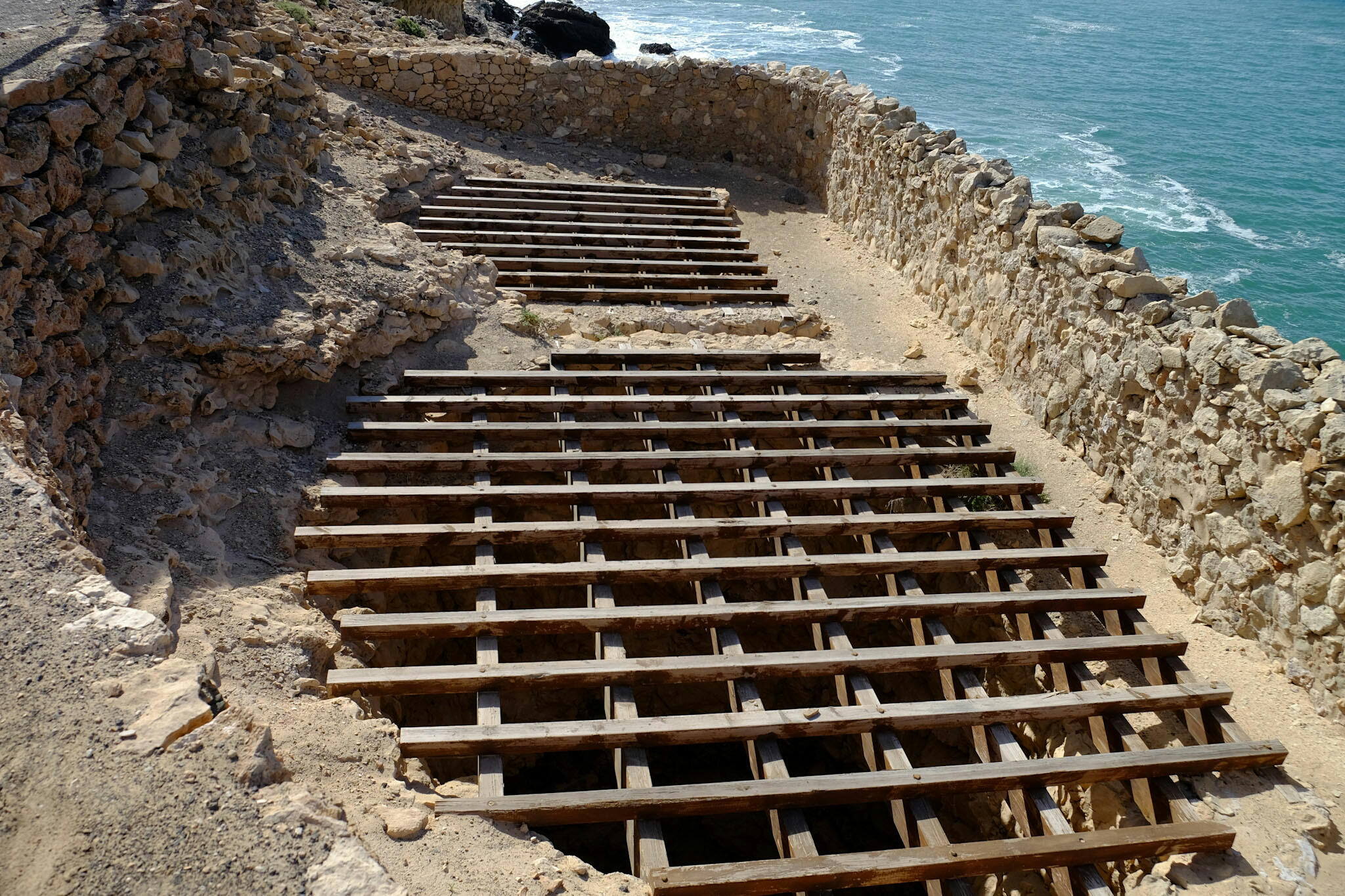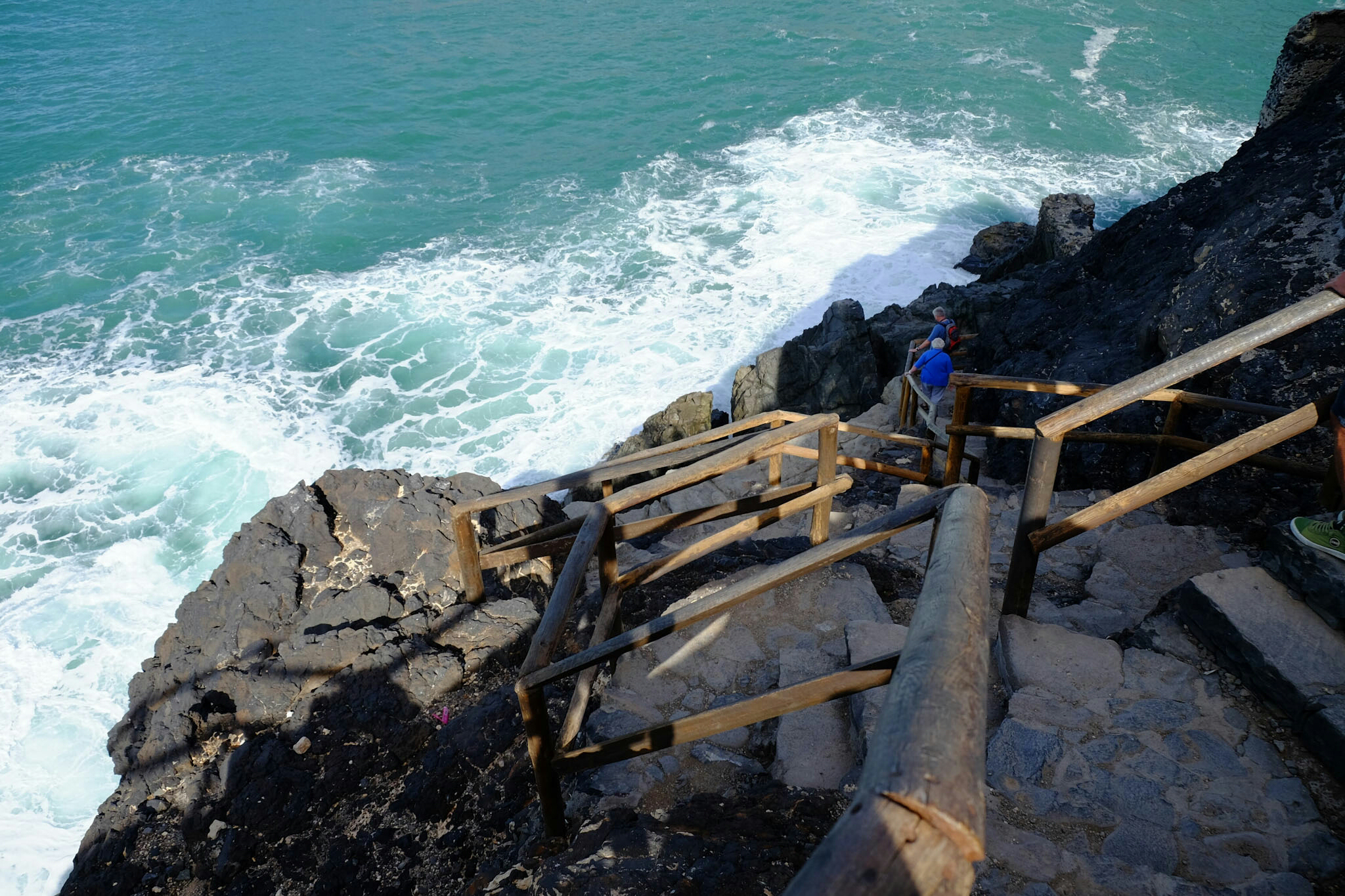 Rechts kann man die Klippen raufgehen und in einem etwa 20-minütigen Fussmarsch über teils steile Felstreppen die Schwarze Höhle besuchen gehen. Einer der beeindruckendsten, von der Natur geschaffenen Orte von Fuerteventura. Auf dem Weg entlang der Klippe sieht man noch zwei Kalköfen, wo früher Kalk gebrannt wurde.