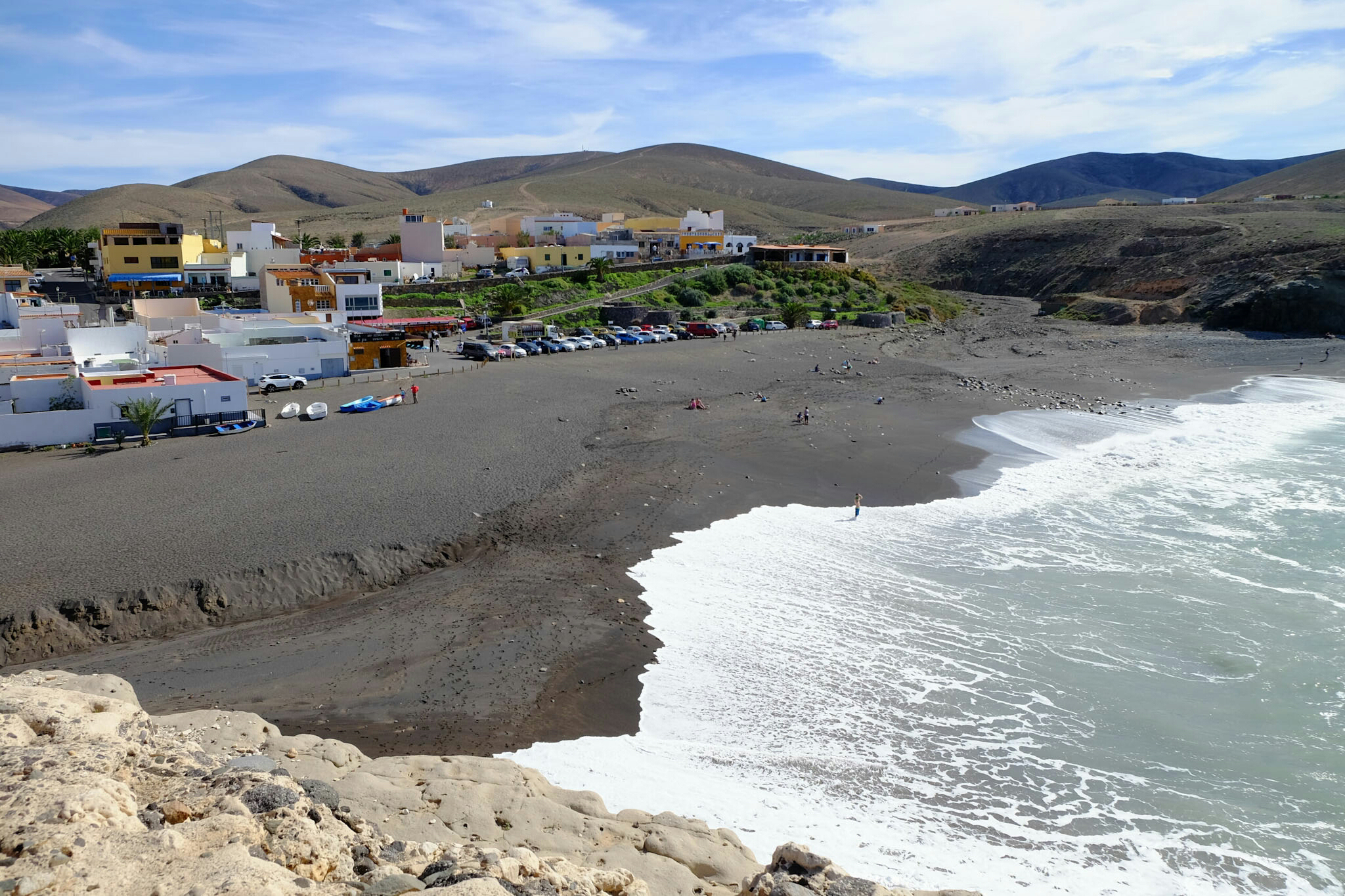 Ajuy ist ein nettes Fischerdorf am Ende eines langen, fruchtbaren Tals. Der Ort ist über eine 10km lange Stichstrasse von Pájara erreichbar. Ein paar weisse Häuser ducken sich an einen breiten schwarzen Strand, eingerahmt von riesigen Klippen. Die Brecher des Atlantiks branden unentwegt auf den schwarzen Sand. Die Bucht wurde Playa de los Muertos genannt. Hier landeten anfangs des 15. Jh. die Eroberer, um die Ureinwohner zu unterwerfen. Später kamen in der Bucht die zahlreichen die Piraten an Land, was meist auch eher blutig ablief. Heute sterben hier nur noch unvorsichtige Badegäste, die von der Strömung rausgetragen werden.