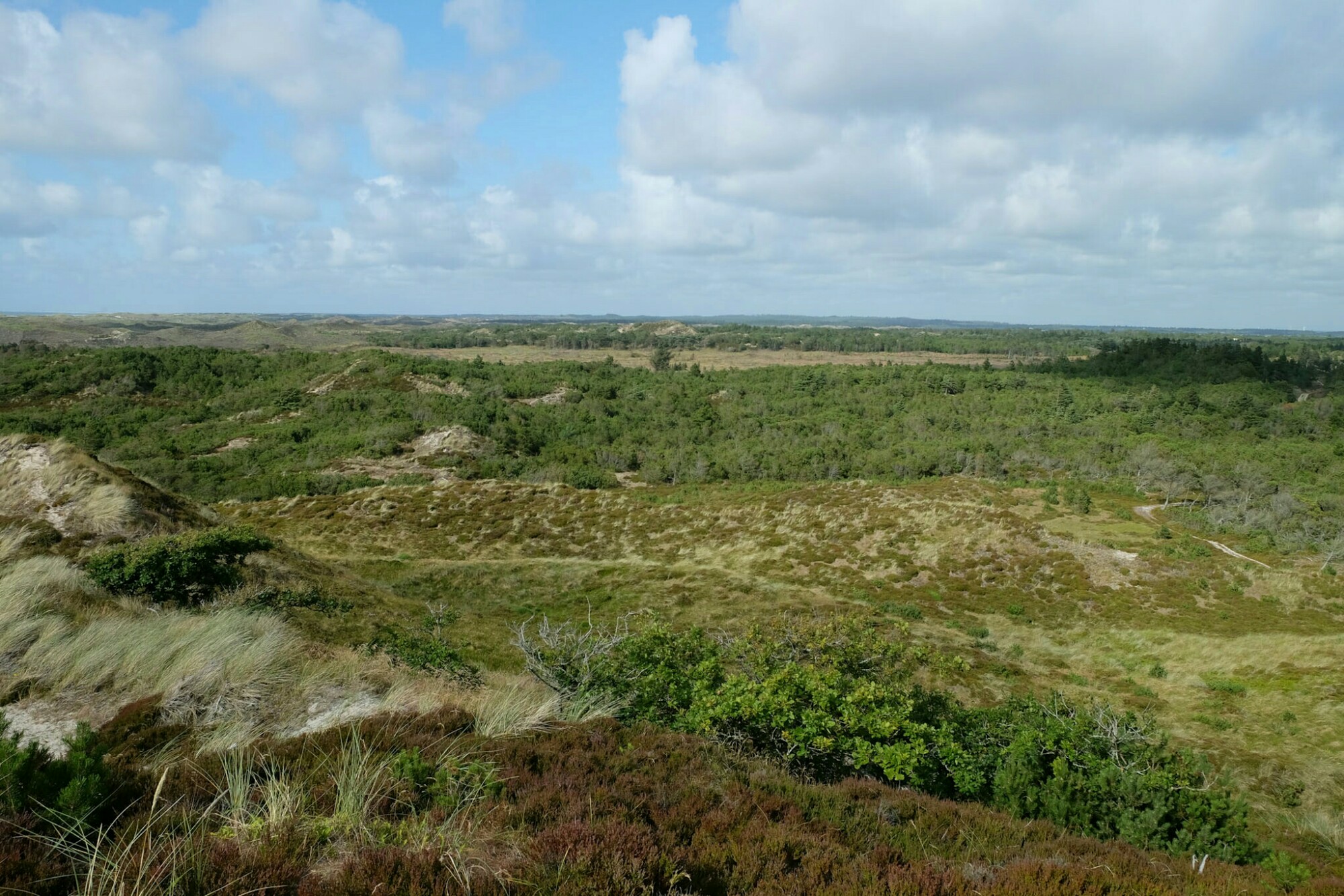 Der Weg führt auch auf die höchste Düne im Gebiet, den Gråmulebjerg. Der „Berg“ ist 30m hoch! Von oben hat man einen fantastischen Blick nicht nur über die Dünen mit dem Eichengebüsch, sondern auch weit über das Meer und in das Landesinnere. Der starke Westwind zerrt ganz schön an den Kleidern. Aber im Windschatten kann man auch mal in der Sonne eine kleine Rast einplanen.