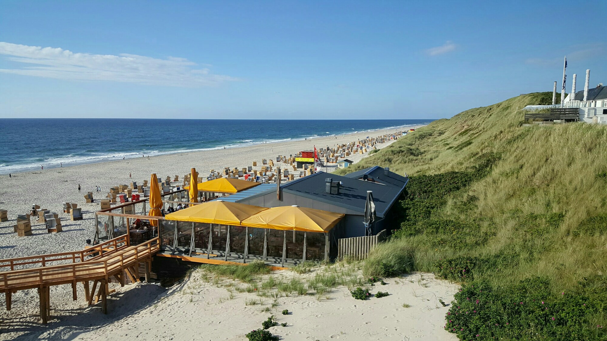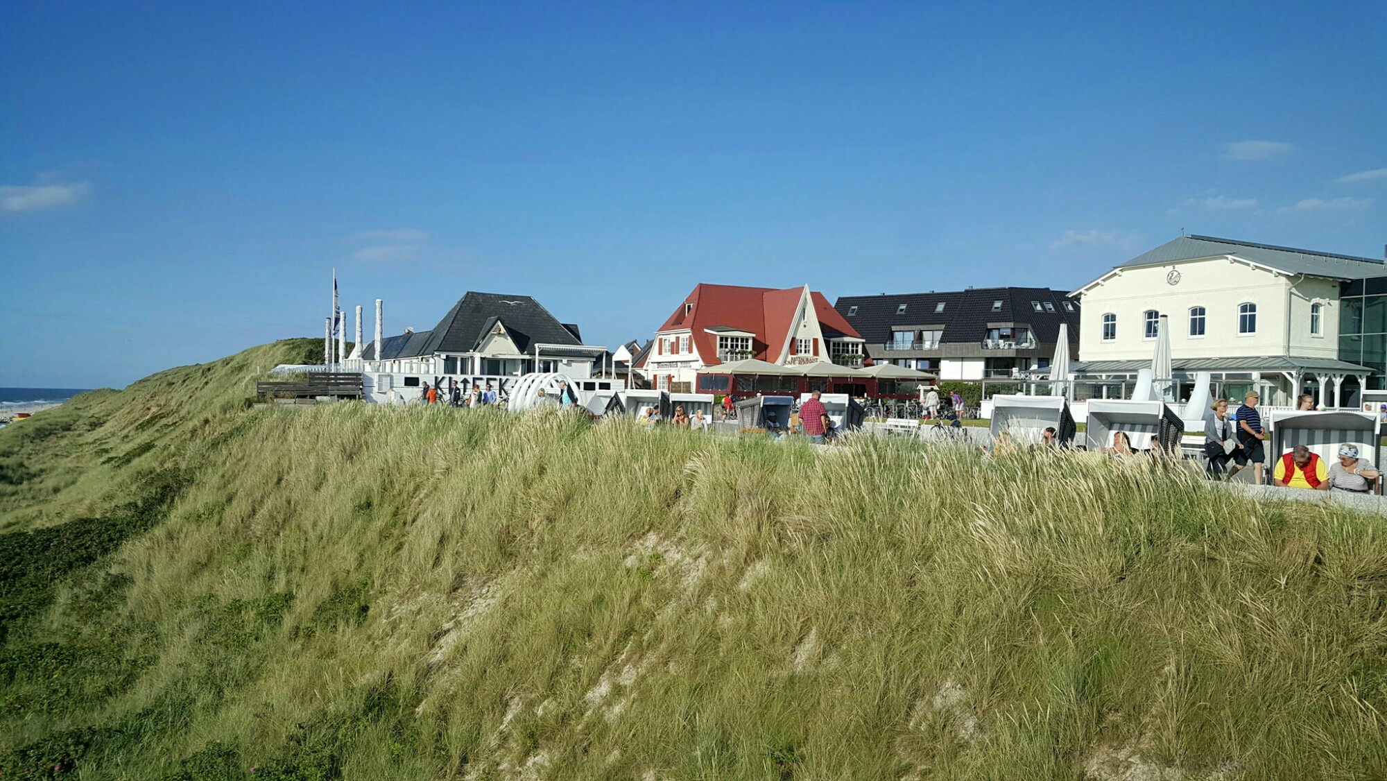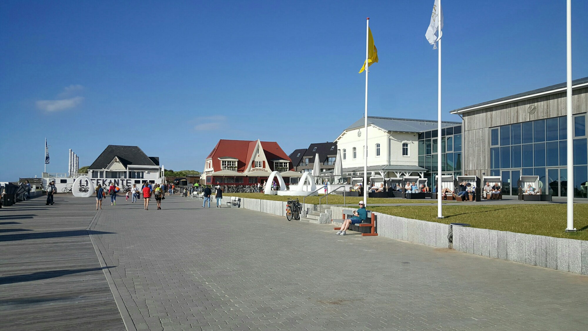Einen sonnigen Abend kann man ganz gut an der kleinen, aber aber feinen Promenade von Wenningstedt geniessen. Vom meiner Ferienwohnung in Westerland sind es mit dem Fahrrad knapp 4km entlang der Küste bis zur Promenade. Da hat die Gemeinde Weningstedt-Braderup die Kurtaxe und Gosch einen Teil seines Gewinns sehr gut investiert. Ich bin begeistert und würde am liebsten nach einem feinen Nachtessen gar nicht mehr nach Hause fahren. Ich glaube, die Bilder sprechen für sich!