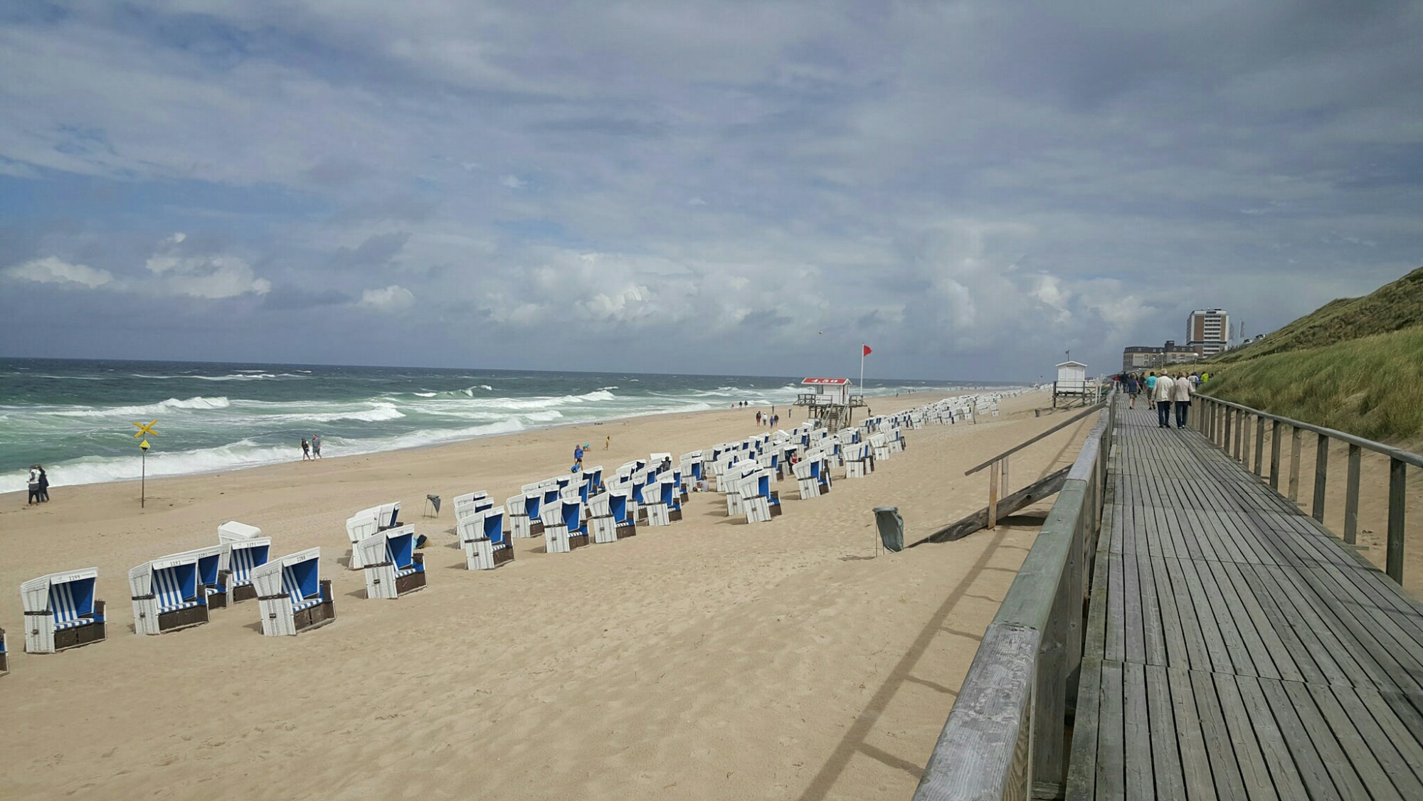 Daher hab‘ ich vor dem Mittag mit dem Velo die 800m an den Strand und zum nördlichen Ende der Westerländer Promenade aufgemacht, um die 2.5km lange Promenade einmal hin- und zurück zu gehen. Etwas Bewegung tut gut! An friacher Luft mangelt es ja selten. In der Mitte der Promenade lockten natürlich auch die Stände mit kulinarischen Spezialitäten auf der Eventmeile der Sailing Week Sylt (vom 4. bis 13. August). Das Konzert der Romada Singers in der Musikmuschel (täglich mehrere Gratiskonzerte) wäre kein Grund gewesen, mich an die Promenade aufzumachen, da dies nicht ganz meinen Musikgeschmack getroffen hätte…