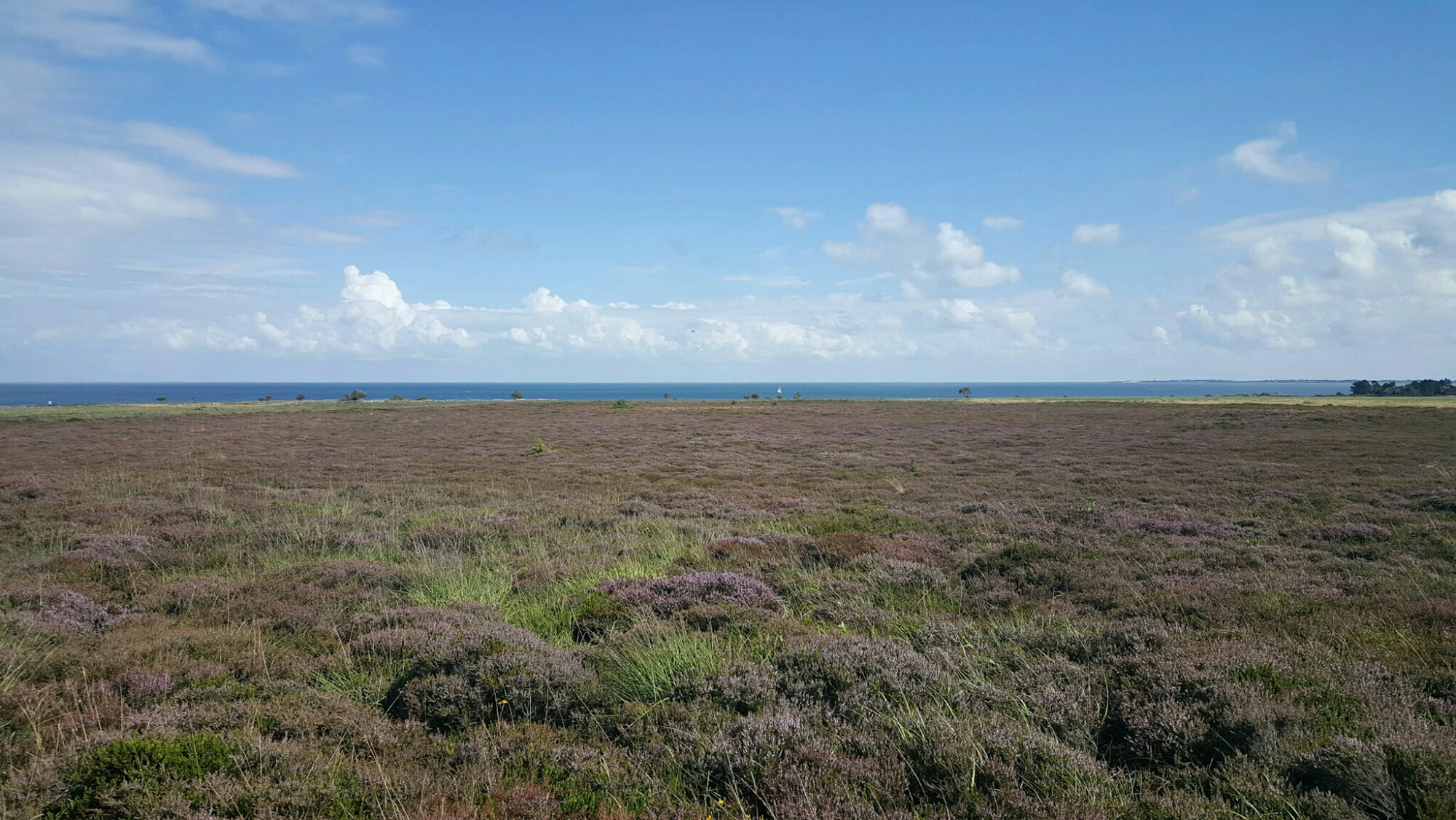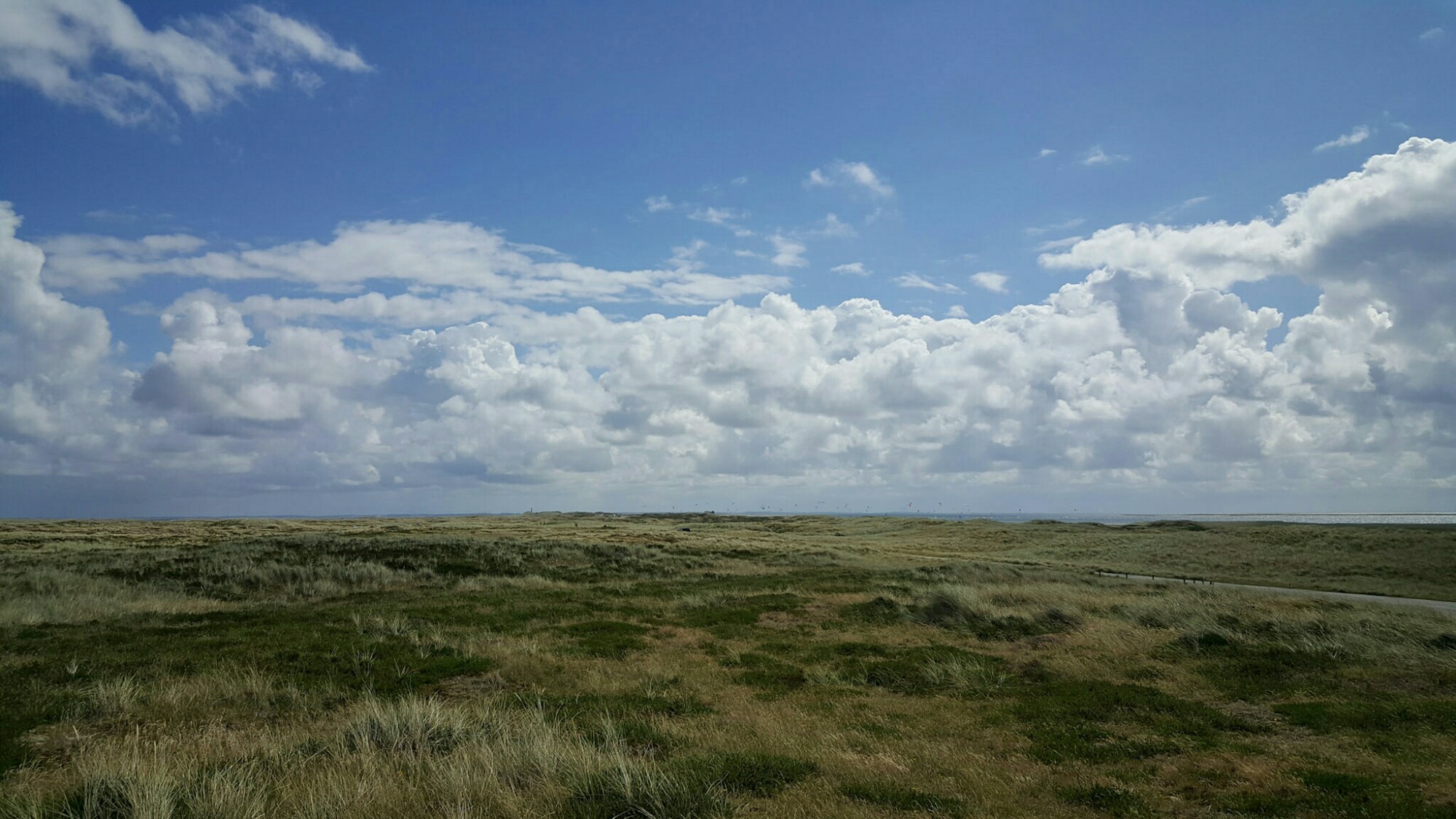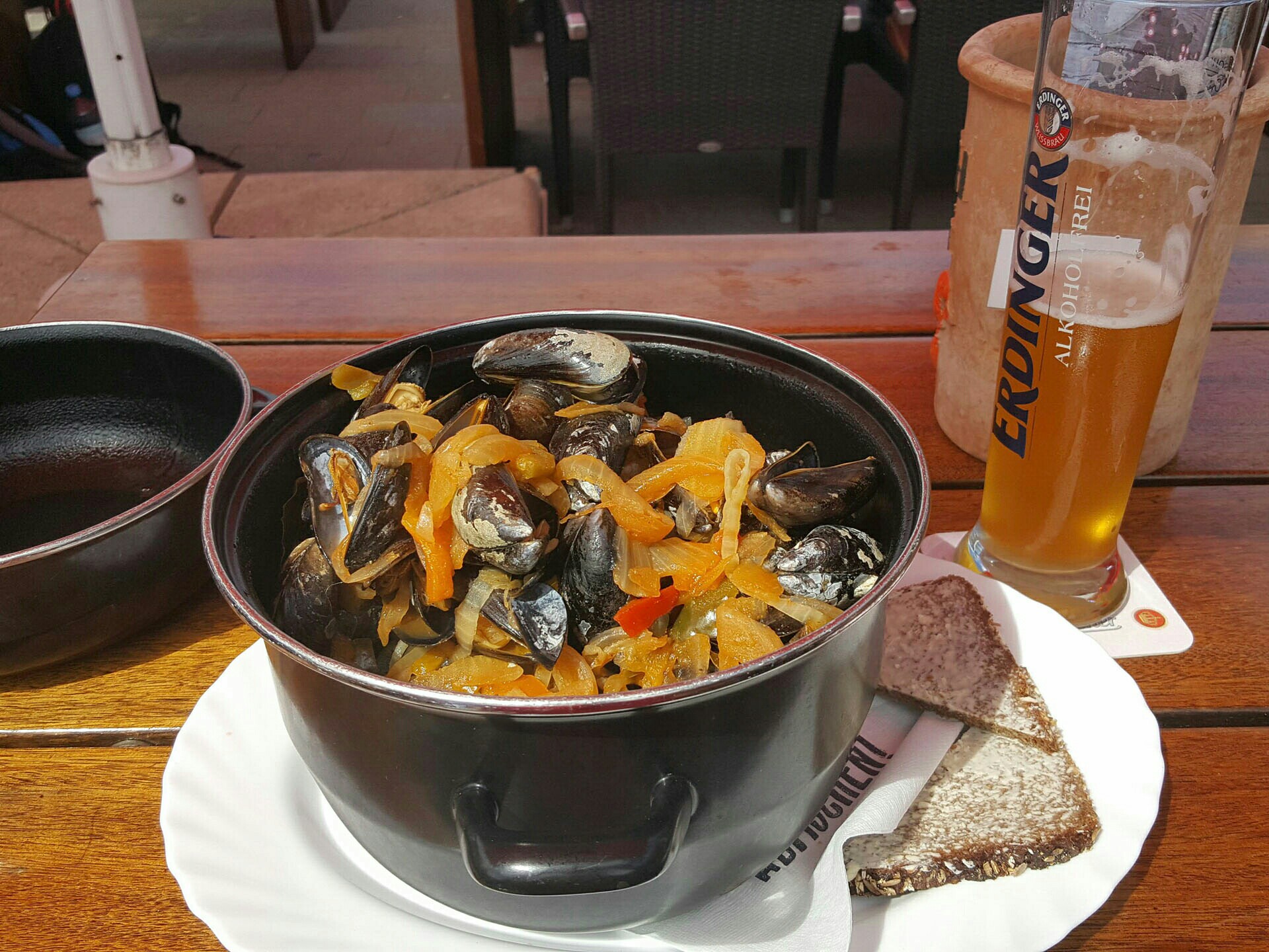 Im Lister Hafen war ich perfekt zur Mittagszeit und konnte mir einen Miesmuscheltopf gönnen. Frisch gestärkt konnte ich die nächste Gegenwindstrecke entlang der Wattküste in Angriff nehmen und dabei eine abziehende Regenfront zwischen Kampen und Westerland beobachten. Als ich durch das Reetdach-Villenviertel von Kampen fuhr (mit den „teuersten Strassen“, respektive Immobilien-Ansammlungen der Welt!) und dann an der Braderuper Heide kurz eine Verschnaufpause einlegte, glitzerten die Pfützen schon wieder im Sonnenlicht.