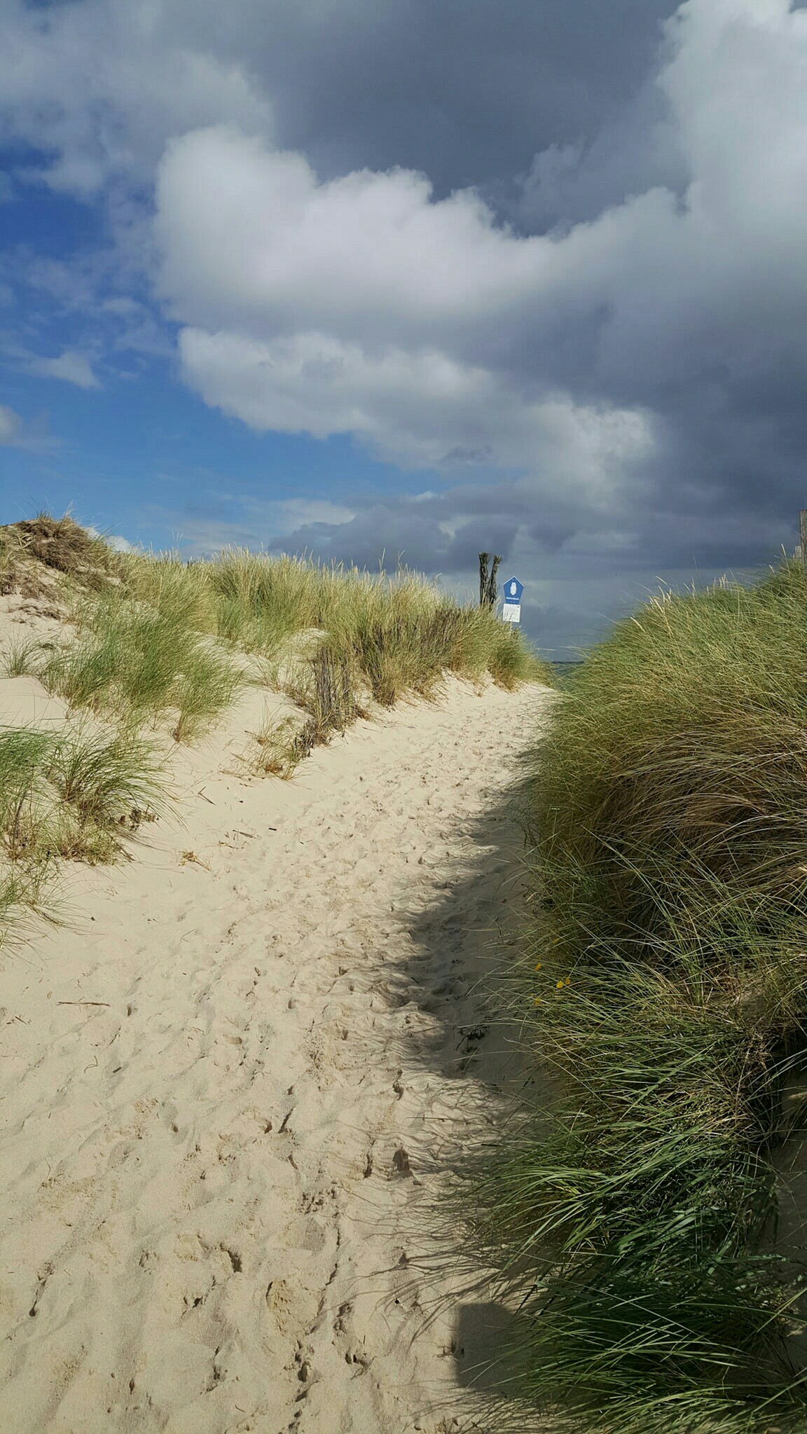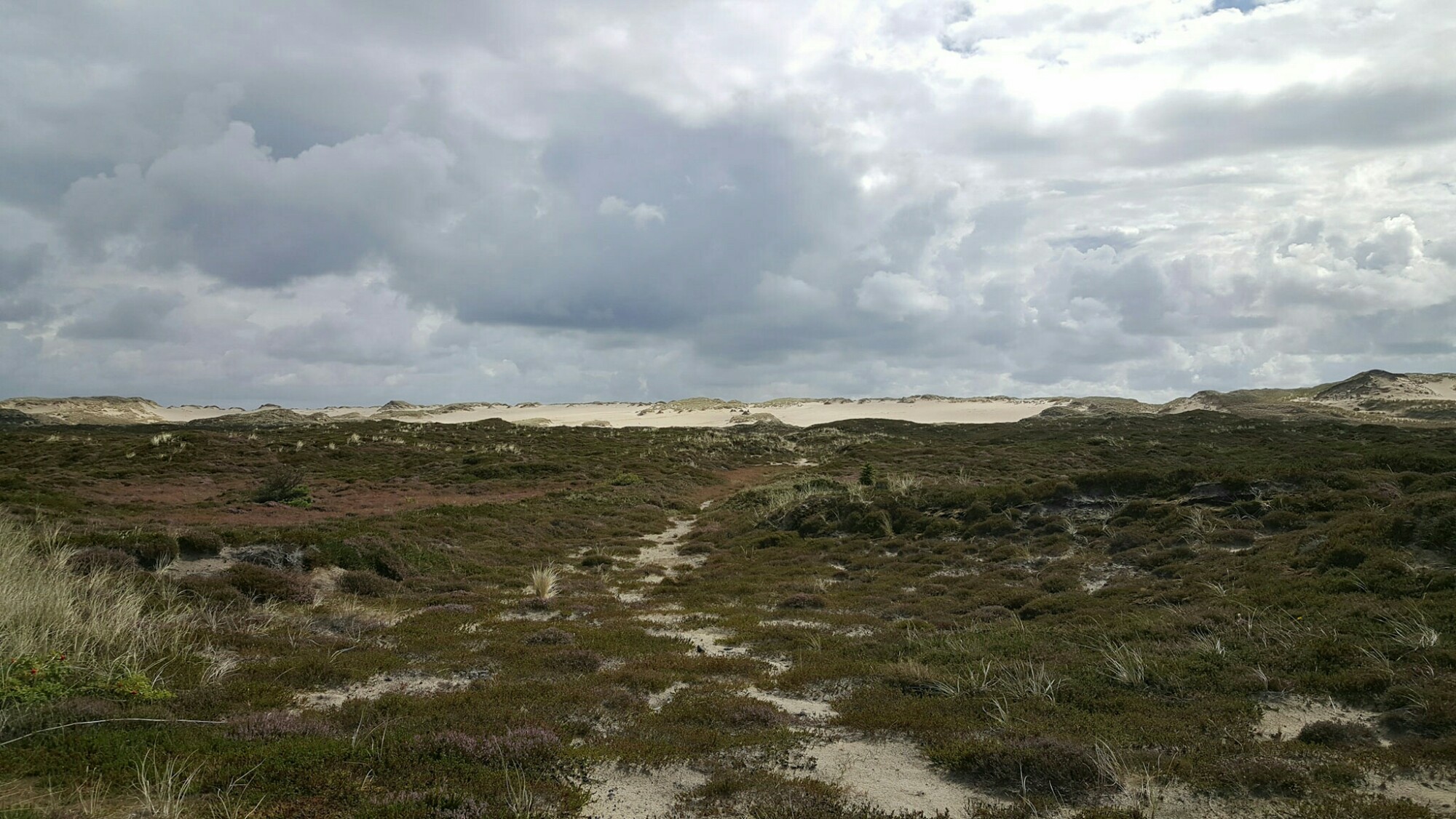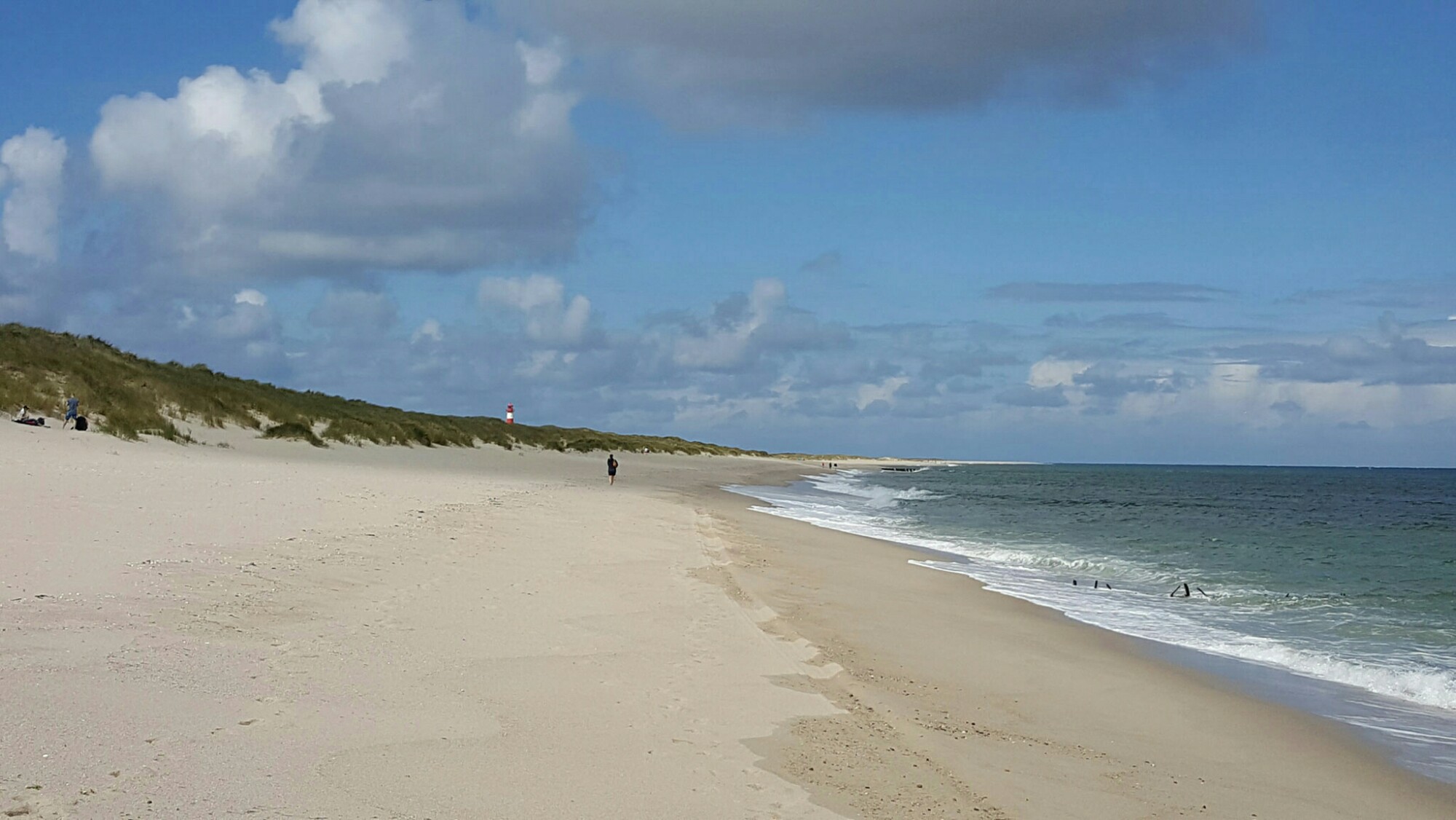 Bin um 10 Uhr gestartet und auf den Fahrradwegen abseits der Strasse entlang den Dünen an Kampen und dem Klappholtal vorbei gefahren. Beim Listland muss man dann eine lange Strecke auf der mühsamen, mit den Autos geteilten Betonplattenpiste in bedauerlich geflicktem Zustand fahren. Mittendrin habe ich die Vogelschwärme beobachtet und dem Gezwitscher der Vögel vor der Kulisse der imposanten „weissen“ Wanderdünen zugehört. Die grosse und die drei kleinen Wanderdünen queren das Listland von West nach Ost und werden vielleicht bald die Listlandstrasse im Osten des Gebiets erreichen. Aber ich werde ja erst auf dem Rückweg auf dieser Seite sein und sooo schnell bewegen sich die Dünen auch nicht (nämlich rund 7m pro Jahr)…