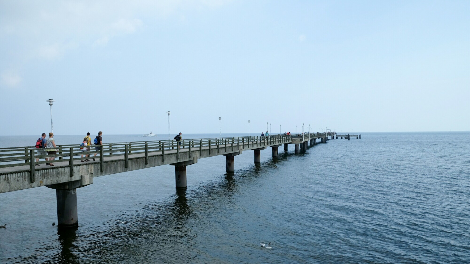 Heute Morgen war es um 6 Uhr nur noch knapp 10° warm, um 9 Uhr waren aber schon wieder schwülwarme 20° erreicht. Durch den verbleibenden Dunst bin ich die rund 30km nach Ahlbeck gefahren und habe die vorbeiziehenden dicken Nebel/Gewitterwolken bestaunt. In Ahlbeck war es gegen Mittag immer noch sehr beschaulich und ruhig. 2h gratis parken mitten im Zentrum! Da konnte ich in Ruhe die Seebrücke besuchen, der wunderschön herausgeputzten Promenade entlangschlendern und die vielen Villen bewundern. Die tropische Luftfeuchtigkeit hätte eigentlich eher zu einem Strandbesuch motiviert, aber ein paar Fischbrötchen auf einer Parkbank auf der Promenade waren auch keine schlechte Alternative. Ein paar meiner Eindrücke konnte ich fotografisch festhalten.
