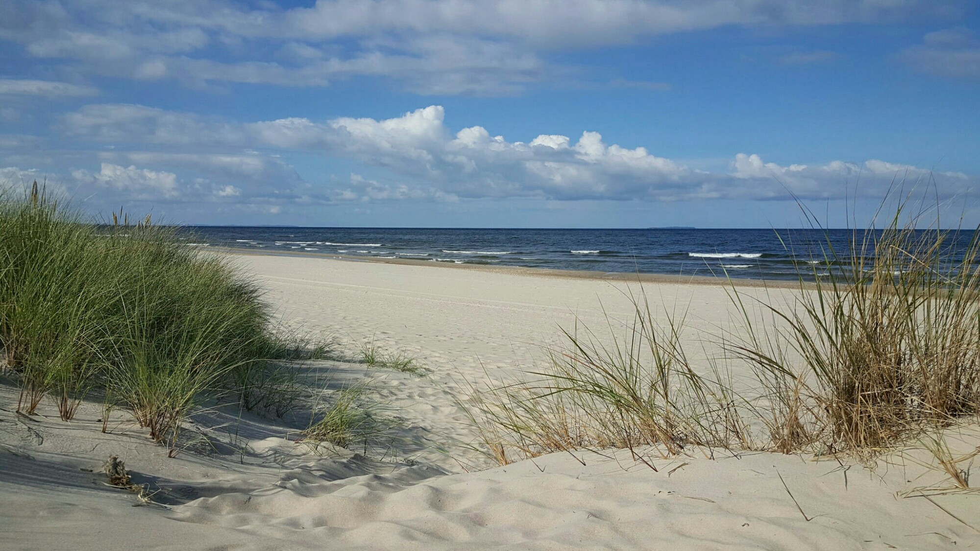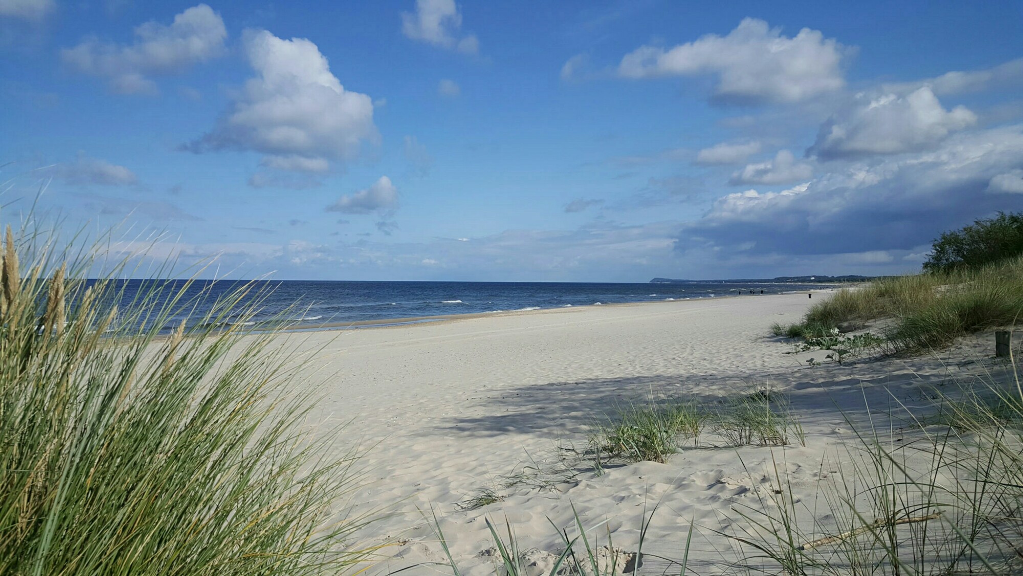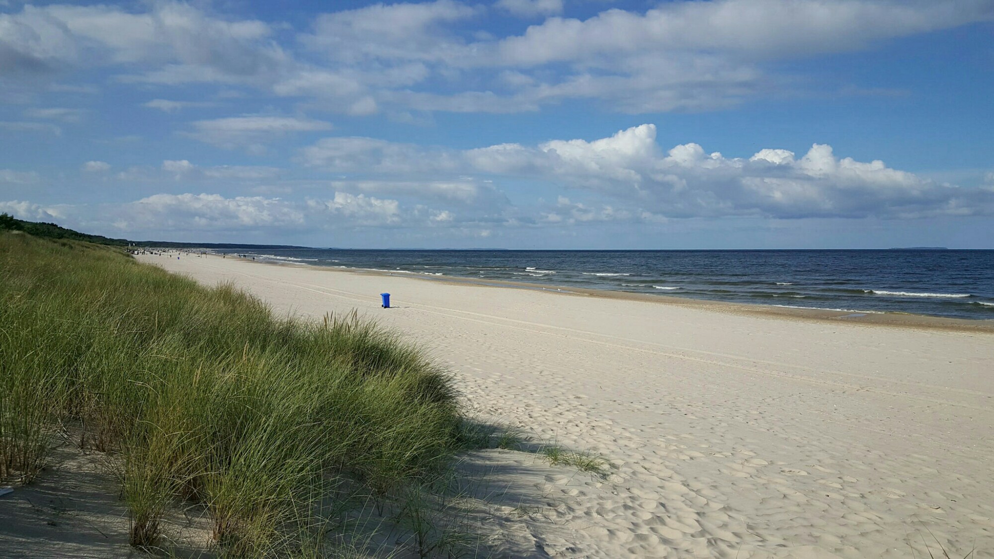 Auf dem Rückweg wollte ich eigentlich noch den Streckelsberg erklimmen. Der Streckelsberg ist eine ca. 58 Meter hohe Kliffranddüne bei Koserow. Er bildet den höchsten Punkt der Steilküste und ist die dritthöchste Erhebung der Insel. Der Stau auf dem Rückweg zerrte jedoch an meiner Geduld, deshalb fuhr ich dann doch an Koserow vorbei zurück in die Ferienwohnung und gönnte mir am späteren Nachmittag, bei nun sonnigerem Wetter, einen ausgedehnten Spaziergang am Strand zwischen Karlshagen und Trassenheide. Etwas Bewegung brauchte ich dann doch noch. Und den Strand kann ich sehr gut mit dem Fahrrad (2.2km) erreichen.