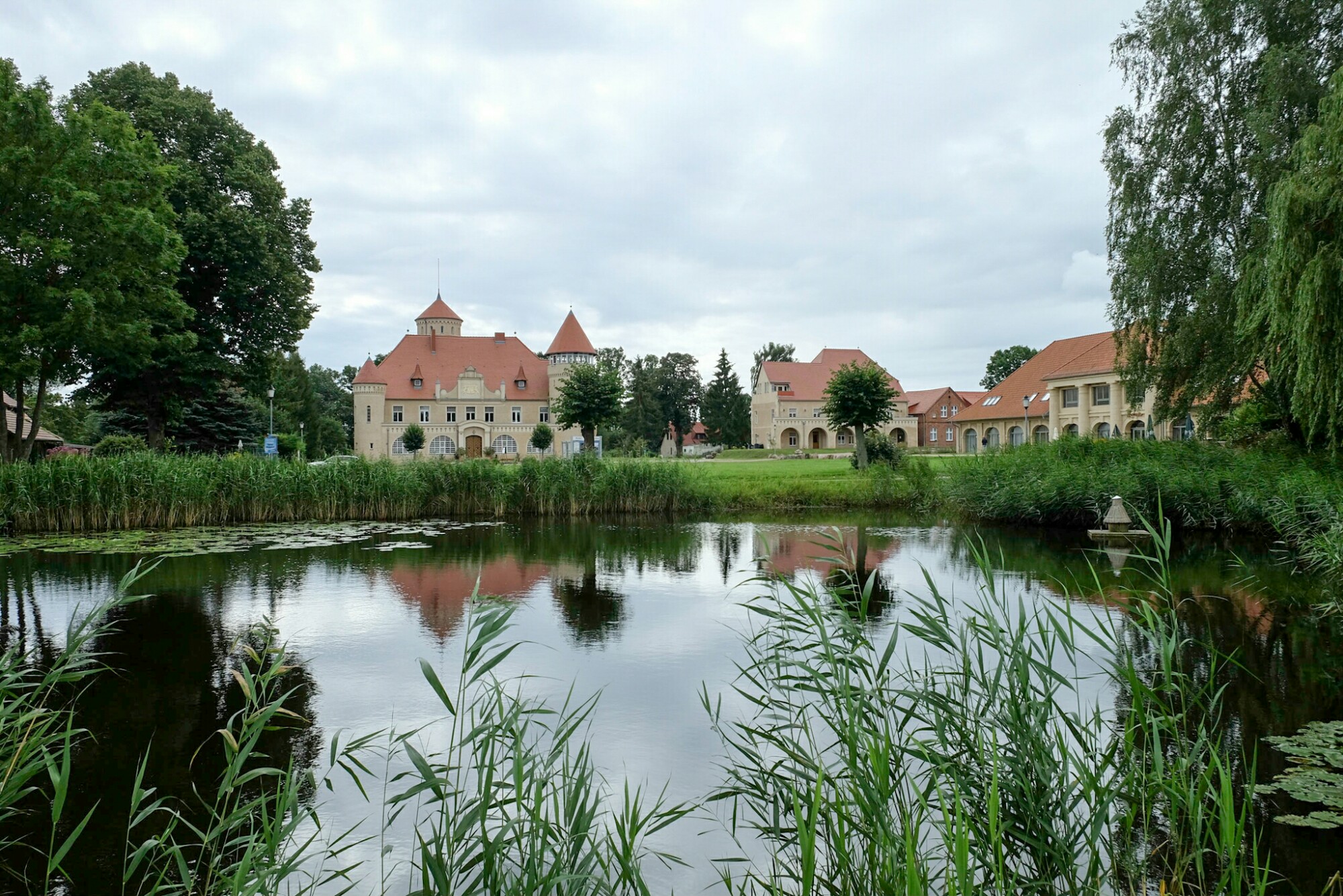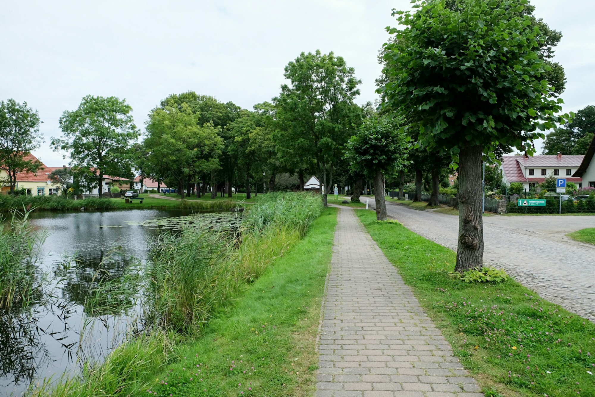Stolpe war mein erstes Ziel. Über eine holprige Kopfsteinpflaster-Allee kommt erreicht man den Ort, dessen Häuser idyllisch um den Dorfteich angeordnet sind. In der winzigen Dorfbäckerei kann man sich eine süsse Zwischenverpflegung kaufen. Aber es ist das „Kunstschloss“, welches mit seinen sehr gekonnt renovierten Bauten den kleinen Ort dominiert. Dort finden während der Saison viele Anlässe statt. Es öffnet erst um 11 Uhr, daher gibt’s für mich als Frühaufsteher keinen Rundgang durch die Räume.