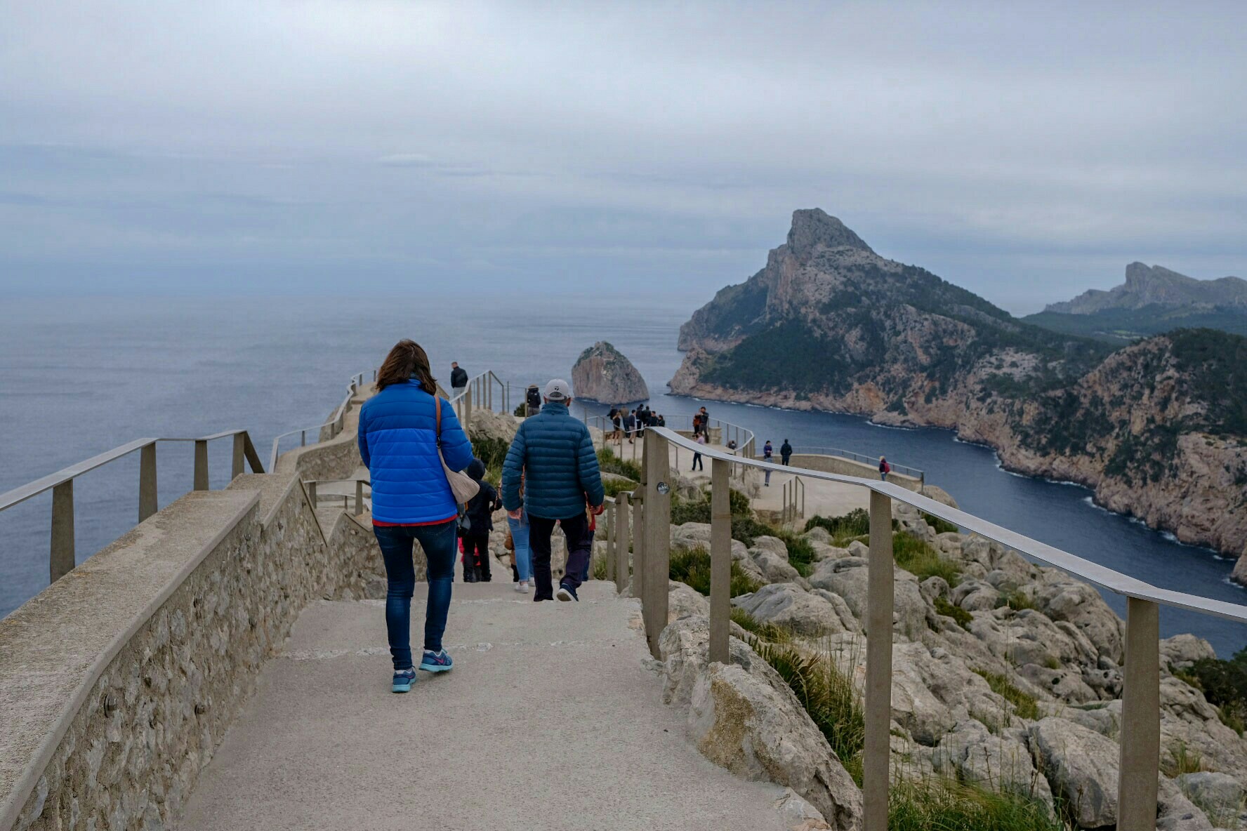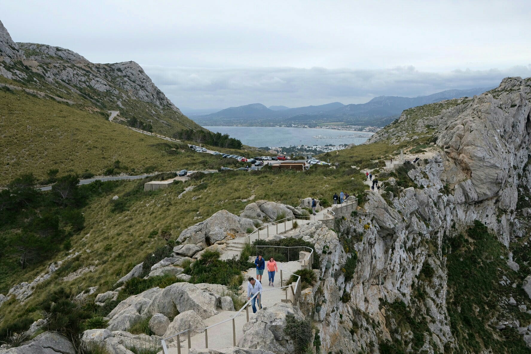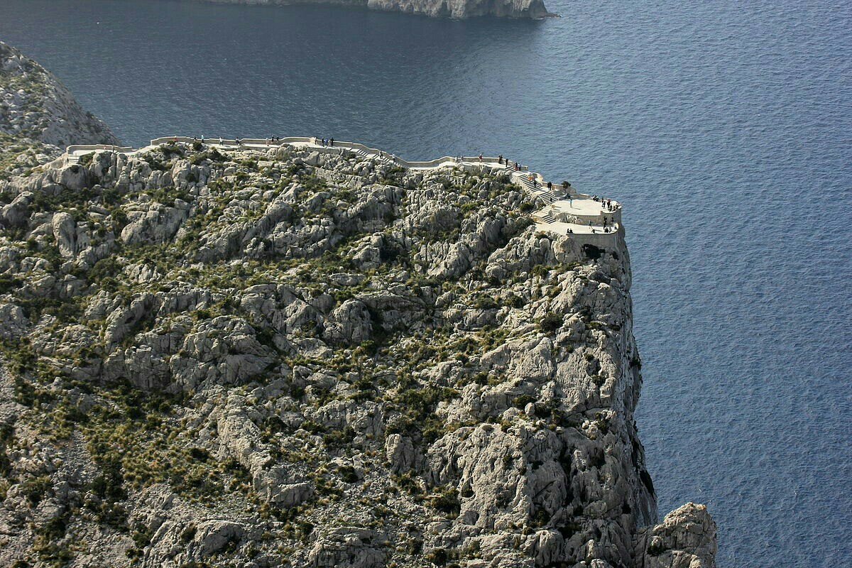 Noch ein Stück weiter habe ich mir auf dem nächsten grossen Parkplatz mit menem Auto eine der letzten Parklücken ergattert. Die Landzunge hat ja etliche Aussichtspunkte mit spektakulären Ausblicken. Am bekanntesten ist jedoch der Mirador del Mal Pas, auch Mirador d’es Colomer nach der kleinen Insel El Colomer genannt, dessen Aussichtsweg und -plattform unten im Bild zu sehen ist.