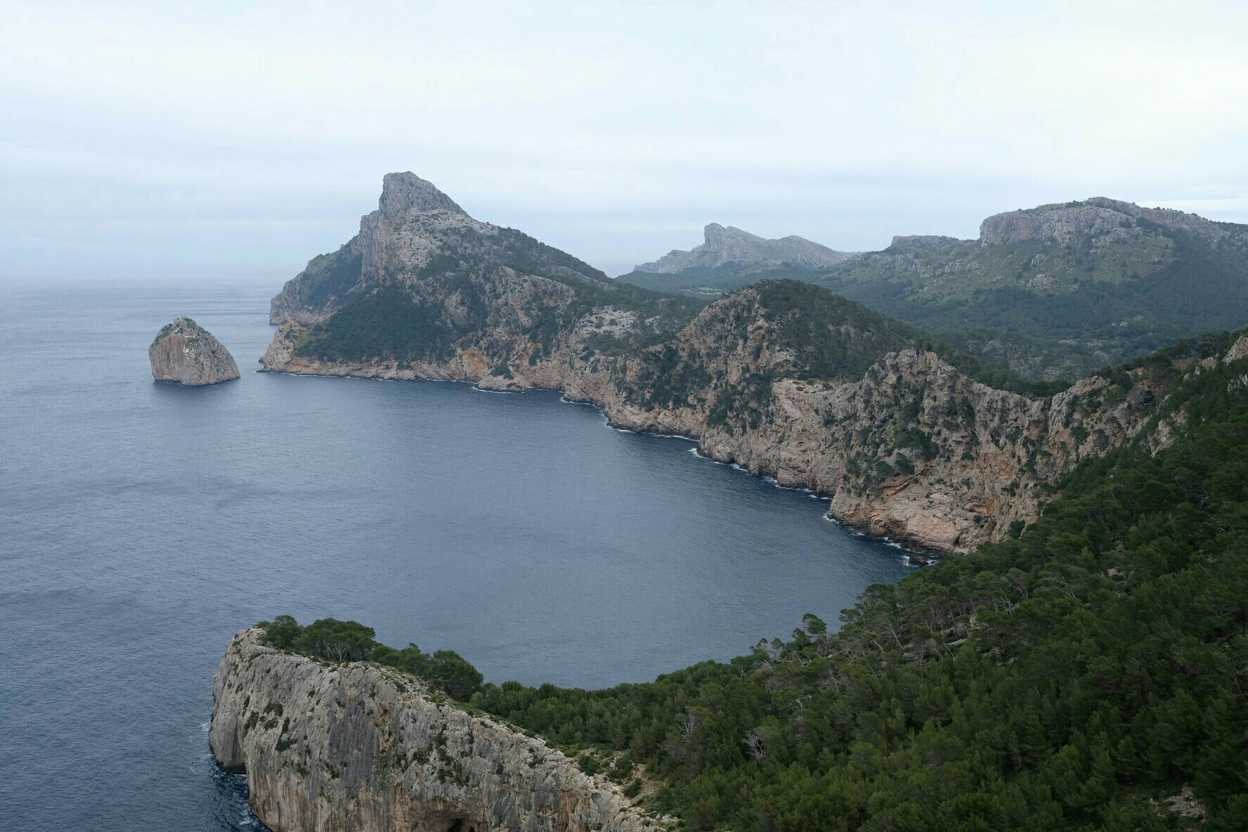Als ersten Ausflug habe ich heute bei bedecktem Himmel den Nordwesten besucht. Formentor ist eine atemberaubend geformte Halbinsel, die von Port de Pollença in nordöstliche Richtung ins Meer ragt und am nördlichsten Punkt Mallorcas, dem Cap de Formentor endet.