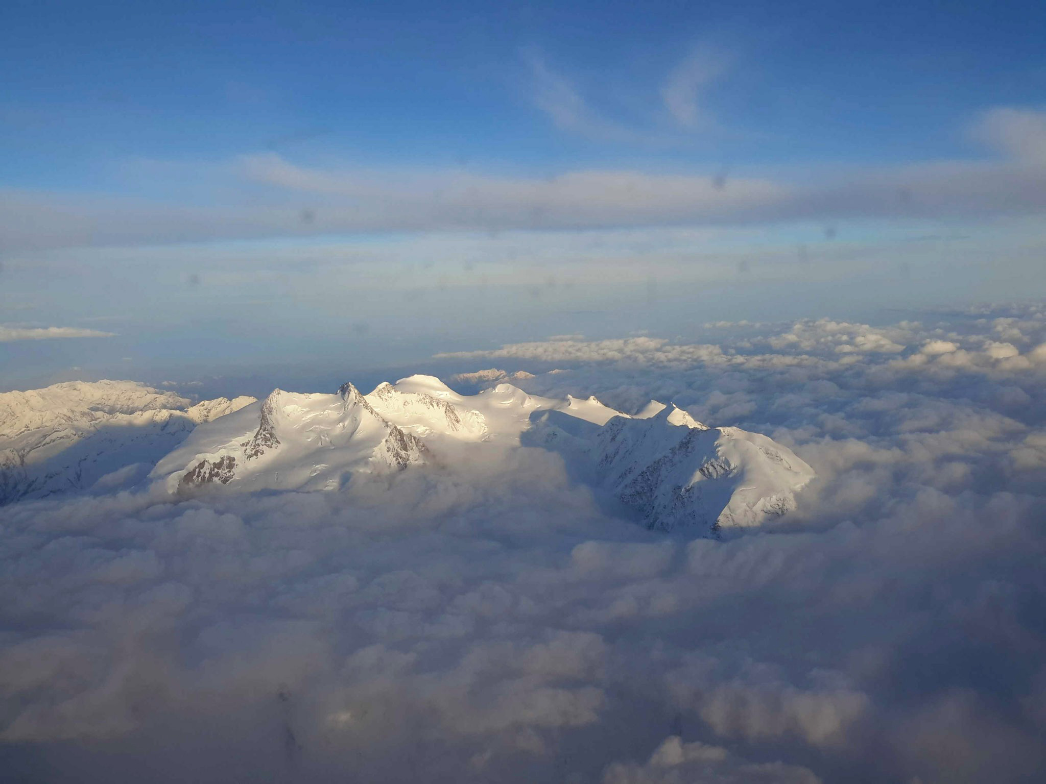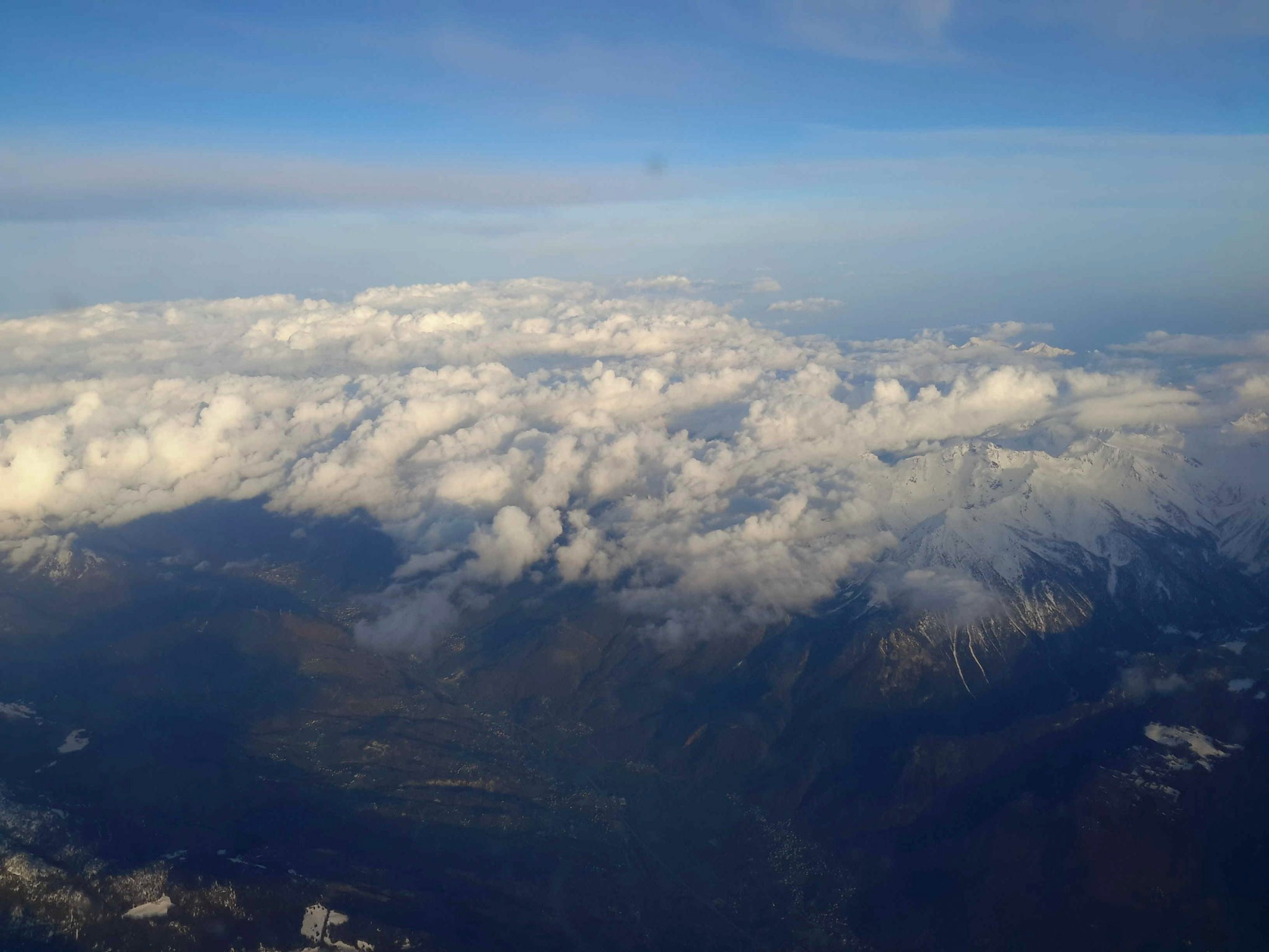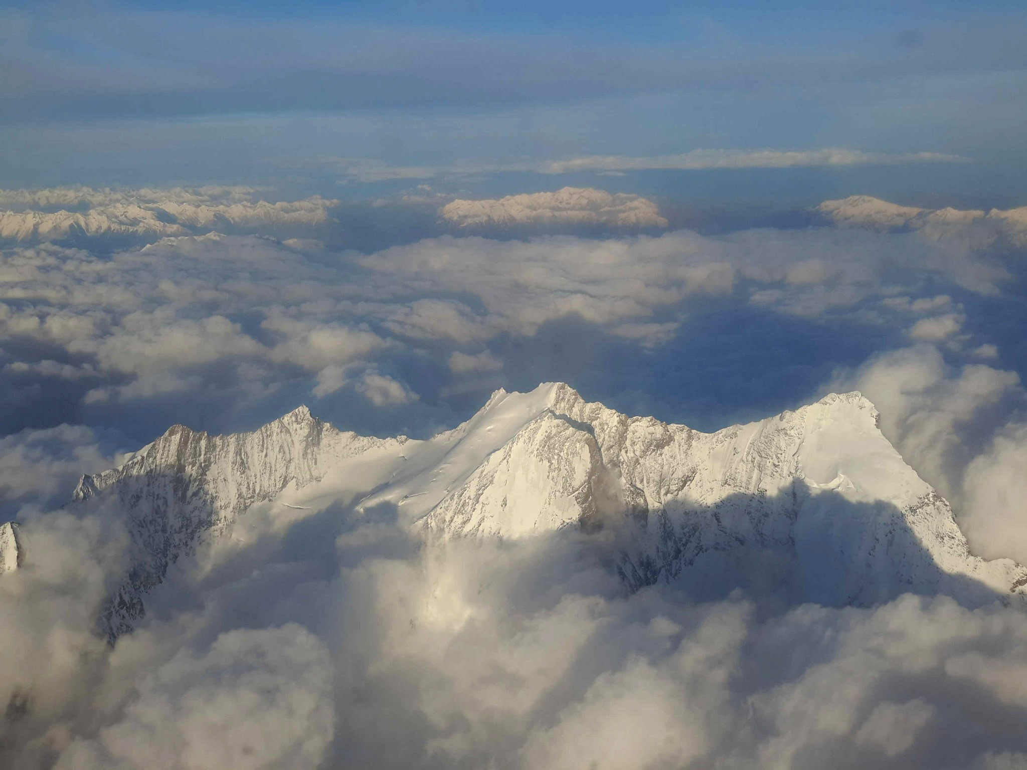 Während des Fluges gönnte uns der Pilot noch einen kleinen Alpenrundflug: Er kurvte mit der A320 zwischen den höchsten Gipfeln der Alpen (Mont Blanc…) auf etwa 5’000m Höhe. Sowas habe ich auch noch nie erlebt. Ich konnte mit dem Tablet ein paar Fotos aus dem Flugzeugfenster schiessen…