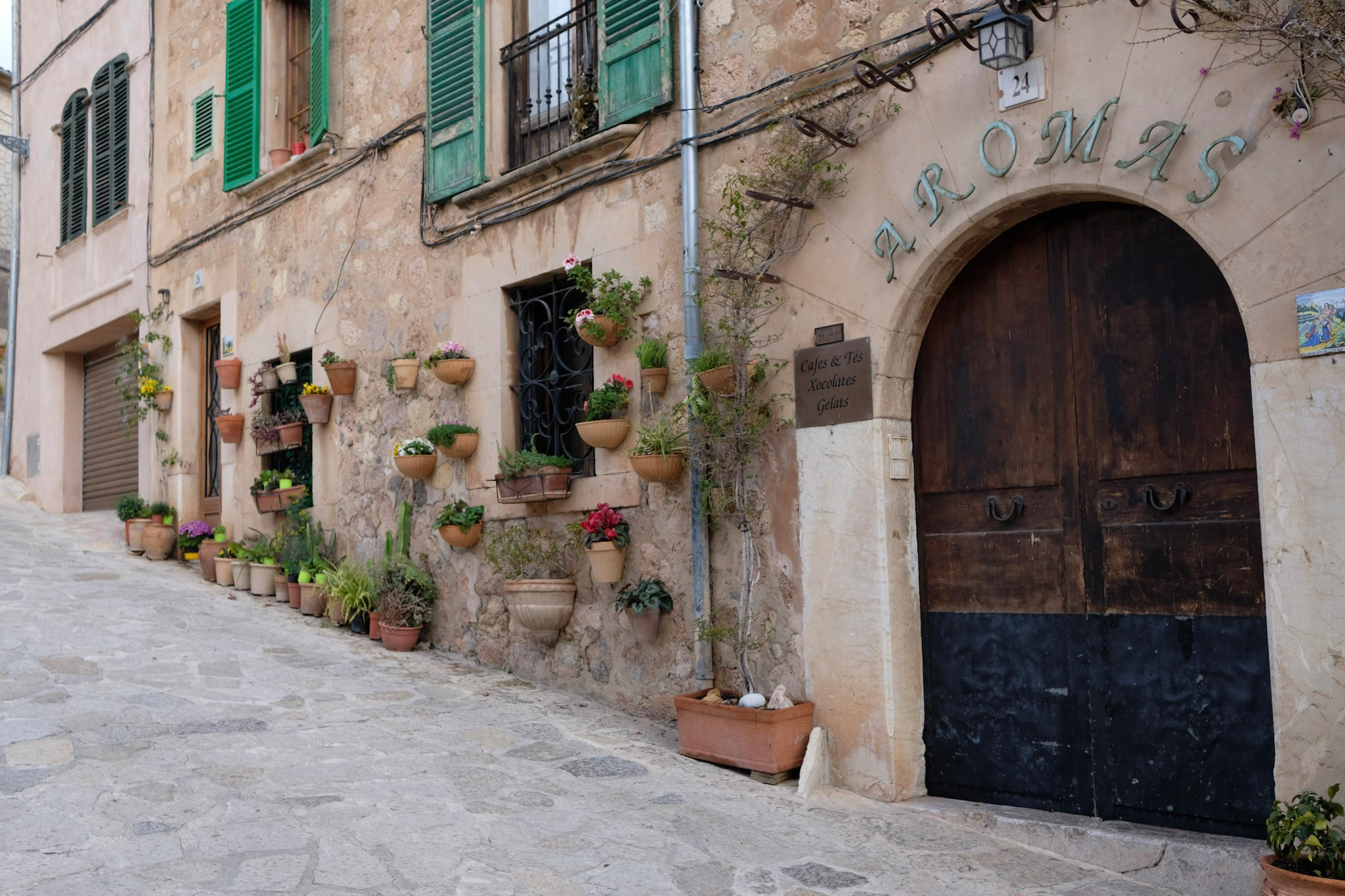 Typisch für Valldemossa sind die vielen Blumenkübel vor jedem Haus. Das sieht man andernorts auf Mallorca nicht. Wenn man mal in einen der Eingänge schaut, kann man sich ein Bild machen, wie hier gewohnt und gelebt wird. Fantastsisch!