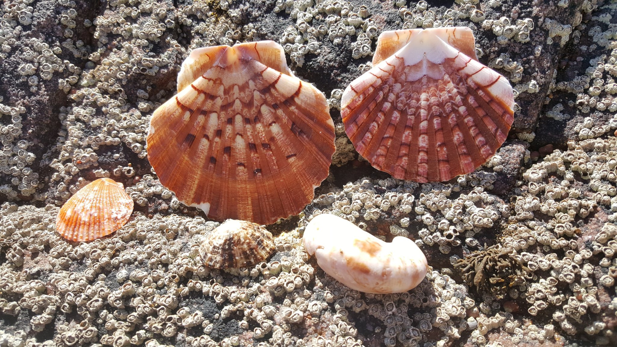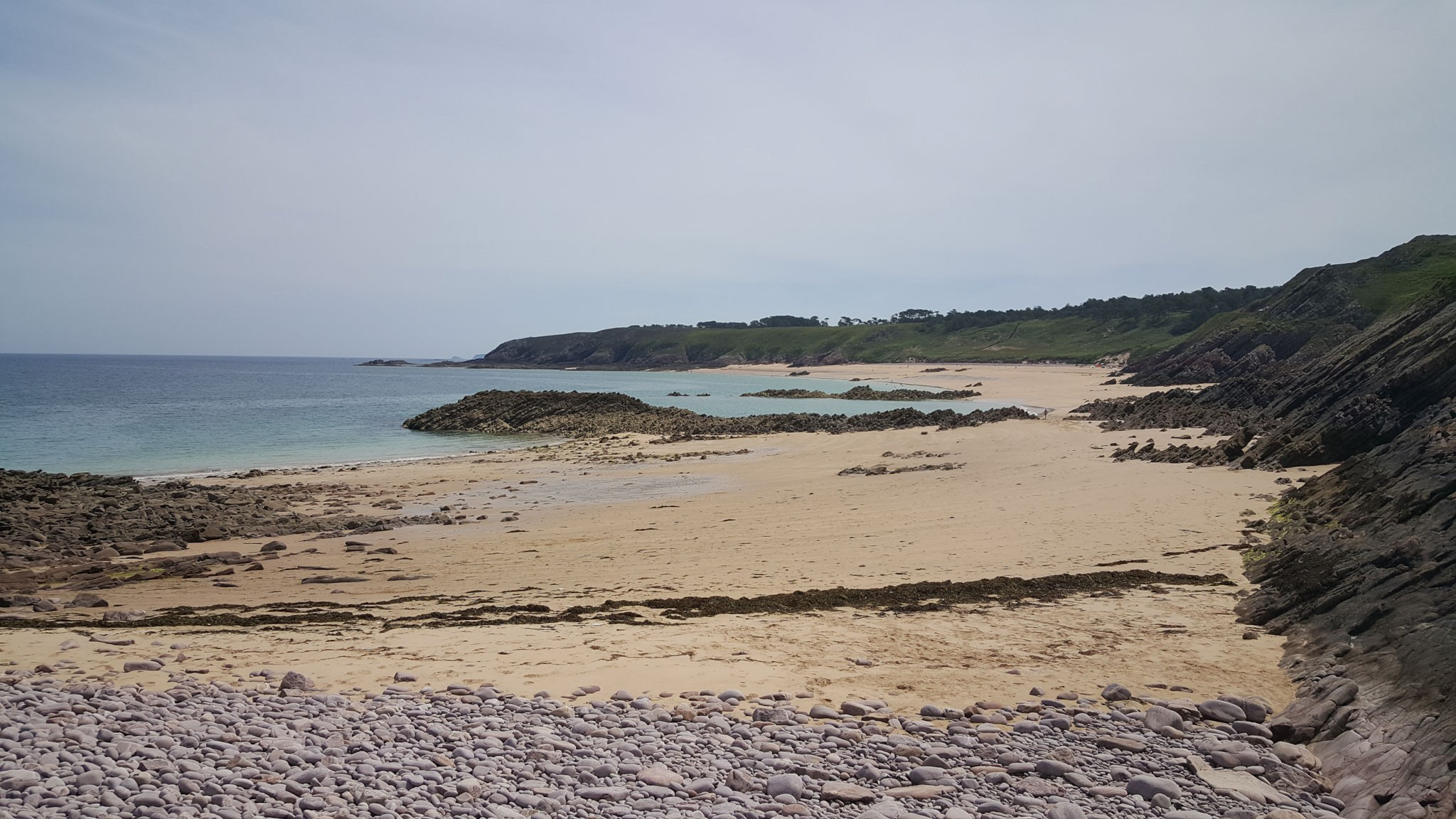 Ab Mittag konnte ich nochmals den wunderbaren Strand Lourtuais erkunden. Bei tiefem Wasserstand kann man dem Strand entlang ziemlich weit gehen und am Ende durch eine Lücke in die nächste Bucht gucken. Und da ich mich mittags deutlich unter der Hochwasserkante bewegte, konnte ich auch ein paar Miesmuschelbänke bewundern.