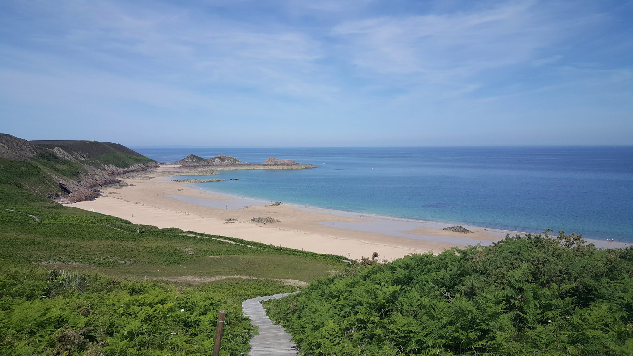 Ich finde den Ausdruck „plages sauvages“ (wörtlich „wilde Strände“) ganz schön romantisch. Die Küste rund um Erquy kann mit vielen wilden Stränden aufwarten. Aber die meisten Strände sind gar nicht wirklich wild, sondern einfach nur natürlich. Und sind meist auch für Familien geeignet. Allerdings muss man sich bewusst sein, dass der Tidenhub hier nicht unbeträchtlich ist: Bei Niedrigwasser hat man einen extrem breiten Strand vor sich. Und bei Hochwasser gibt es vielleicht gar keinen Strand mehr. Wenn man nicht aufpasst, kann man wegen ein paar in’s Meer ragenden Felsen plötzlich eingeschlossen sein. Das Wasser steigt unglaublich schnell! Es lohnt sich also, die Tidentabelle zu beachten.