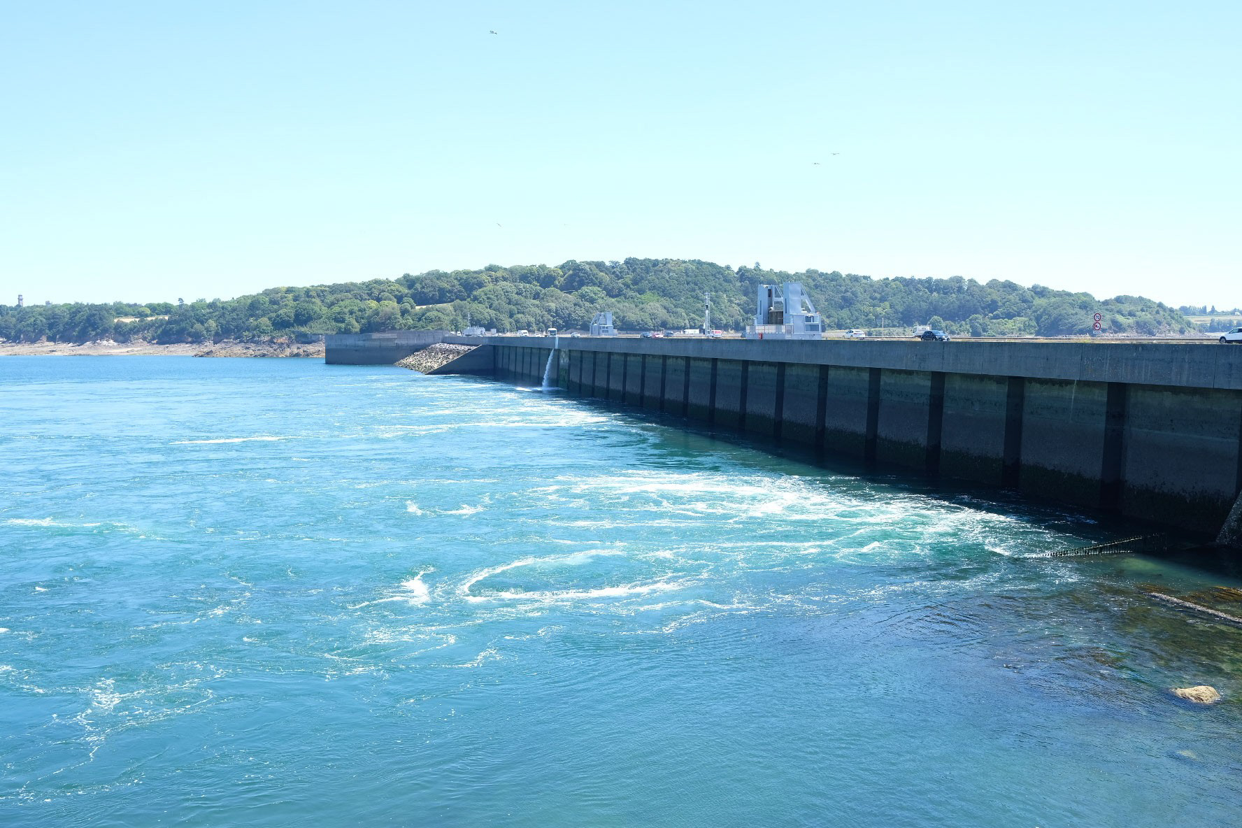 Die Flussmündung der Rance bedeckt bei einer Breite von 14km etwa 22km2. Schon seit langer Zeit nutzte man den Tidenhub mit Staubecken zum Antreiben von Mühlen. In den 1960ern baute man das heute Gezeitenkraftwerk. Die maximale Leistung aus dem Wasserstrom von Ebbe und Flut liegt bei 240MW. Pro Jahr werden durchschnittlich 500 Millionen Kilowattstunden umweltfreundliche Energie erzeugt, das ist eine durchschnittliche Leistung von 57 Megawatt. 180 Millionen Kubikmeter Wasser strömen innerhalb von knapp 7 Stunden durch die Turbinen. Das ist fast unvorstellbar viel Wasser, welches die Gezeiten in der Flussmündung bewegen.