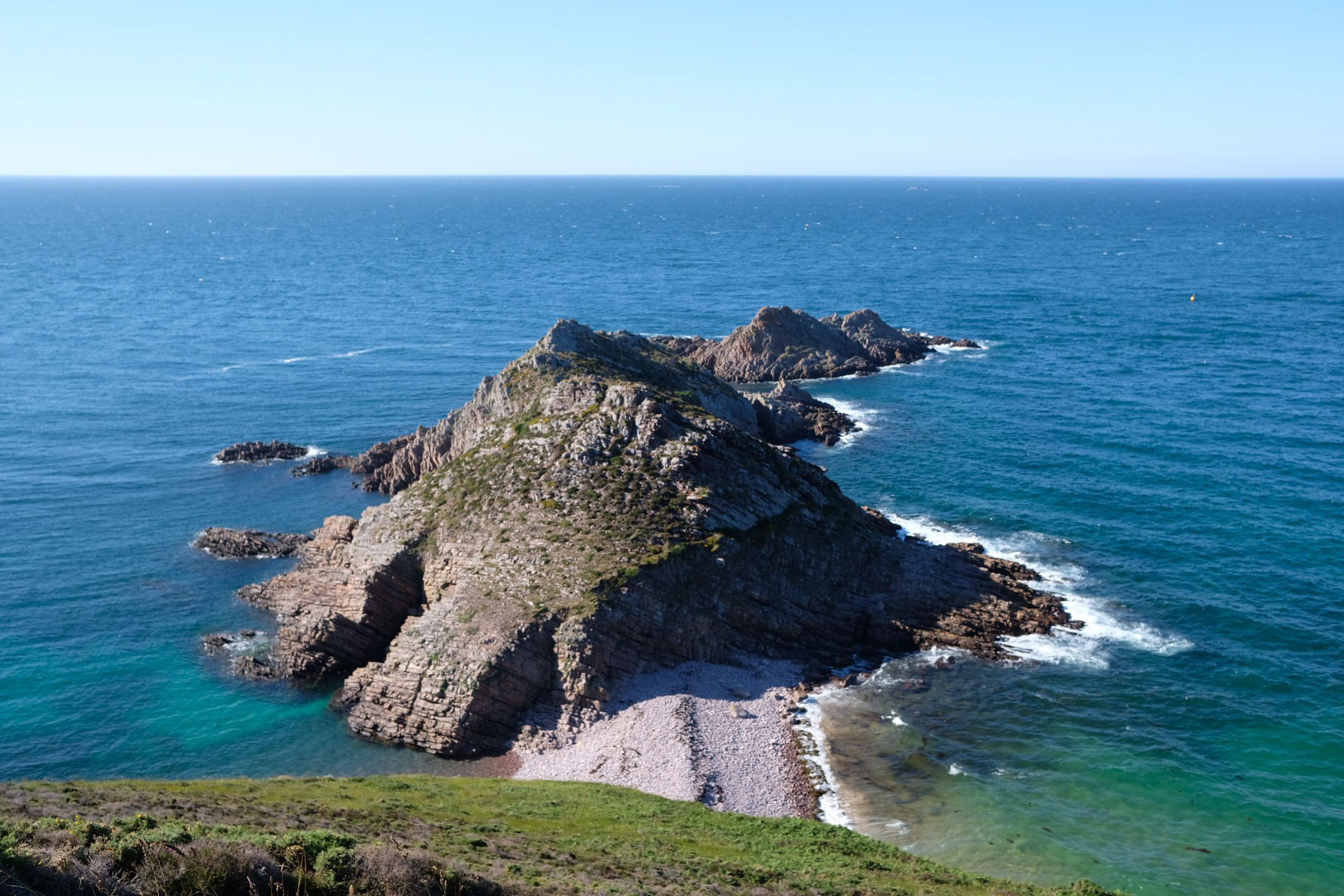 Aber gut hatte ich meine Windshield-Weste dabei, denn der Wind blies schon recht kühl. Wie schmal und kurz die Strände bei Hochwasser werden! Von der Plage de Lourtuais kann bei niedrigerem Wasserstand bis ans Ende des Kaps gehen. Jetzt kann man den Strand kaum schimmernd unter der Wassermassen erahnen, welche an die Felsen branden.