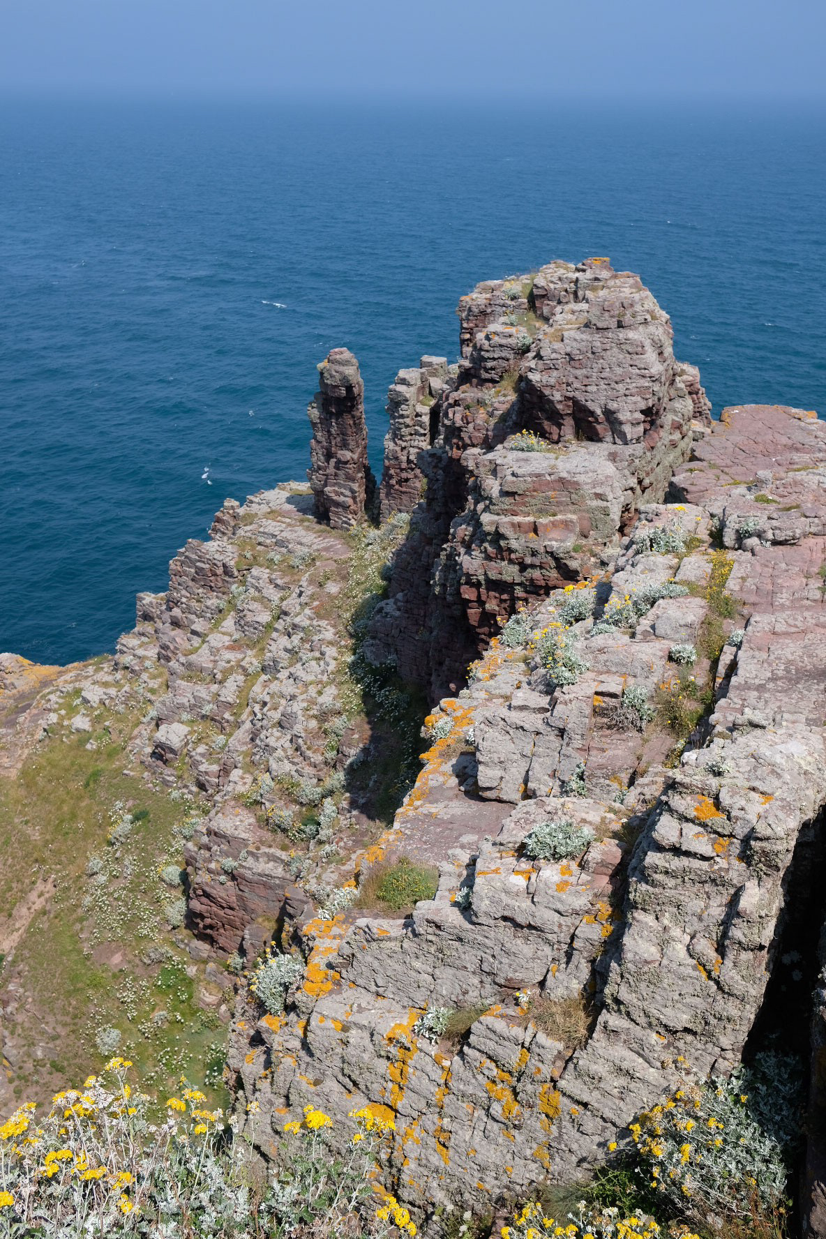 Man kann die 145 Treppen des Leuchtturms erklimmen und die Ausstellung besuchen. Mich hat aber das Panorama am meisten interessiert. Von einer Terrasse aus kann man in aller Ruhe die Vögel im ornithologischen Schutzgebiet La Fauconnière beobachten. Dort leben Trottellummen, Pinguine, Dreizehenmöwen, Stacheln, Austernfischer, Möwen, Eissturmvögel, Papageientaucher, Basstölpel, Wanderfalken, Meerespieper…